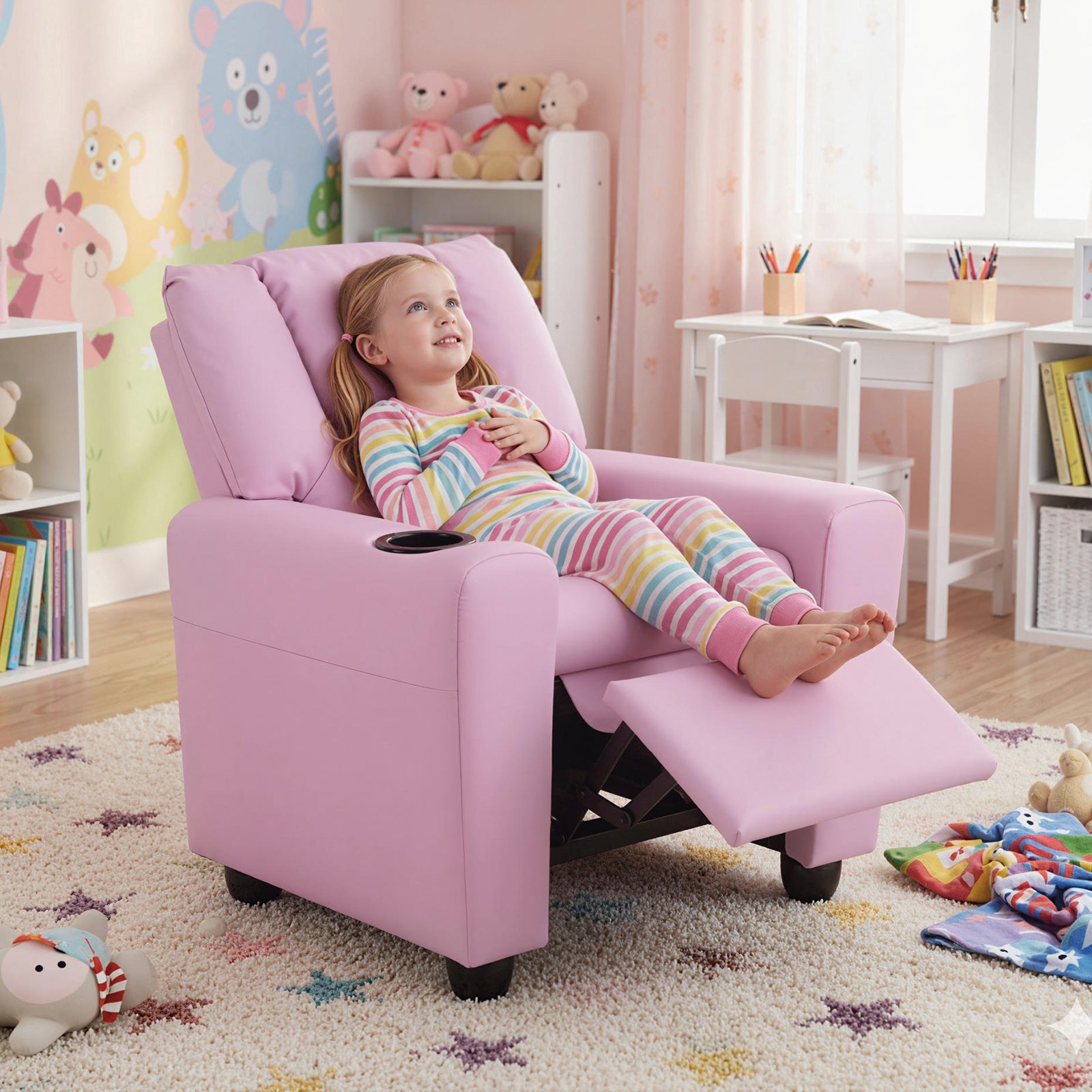 The chair looks and holds up nice. However I bought for the purpose of the recliner. It will not stay up if there is a child in it. Really disappointed