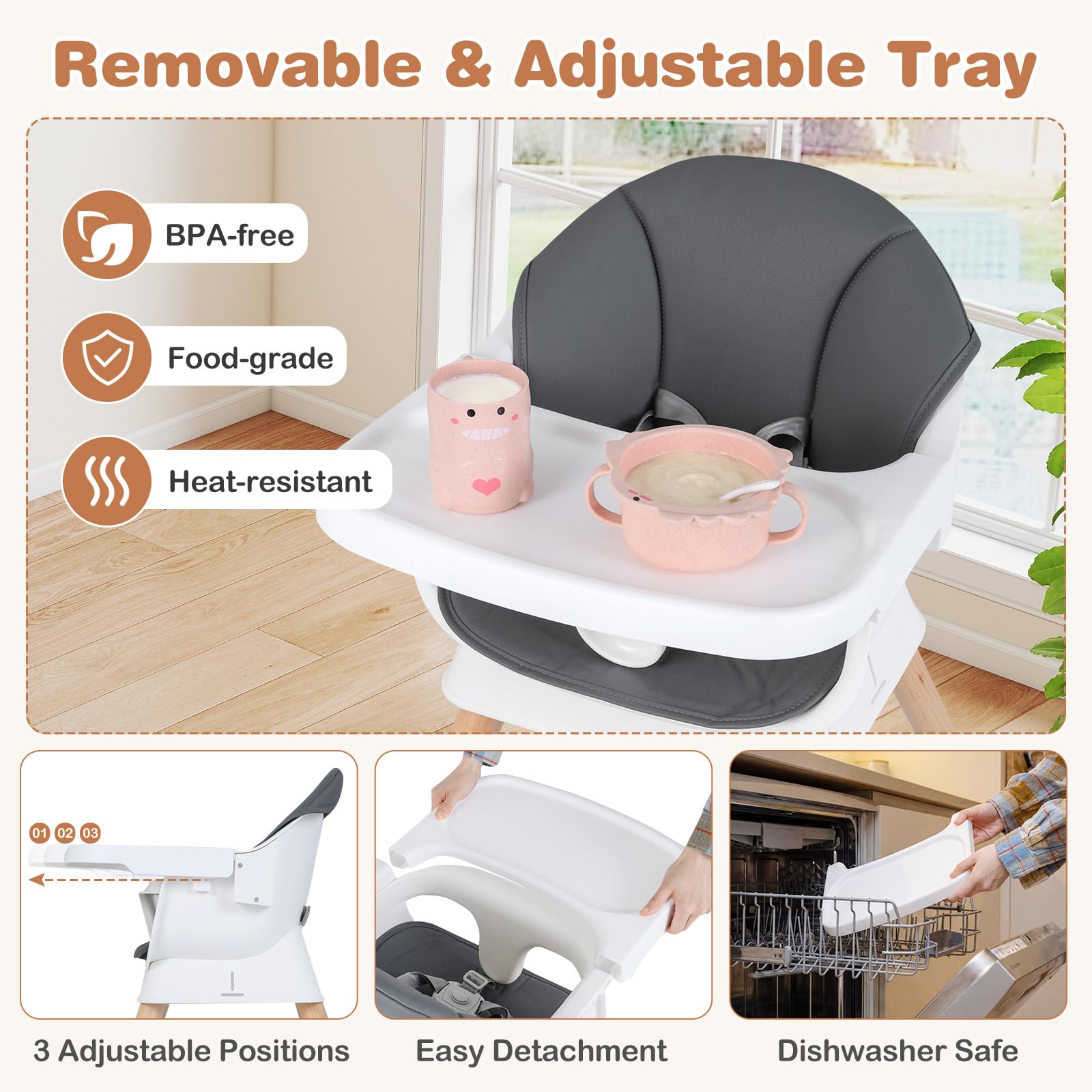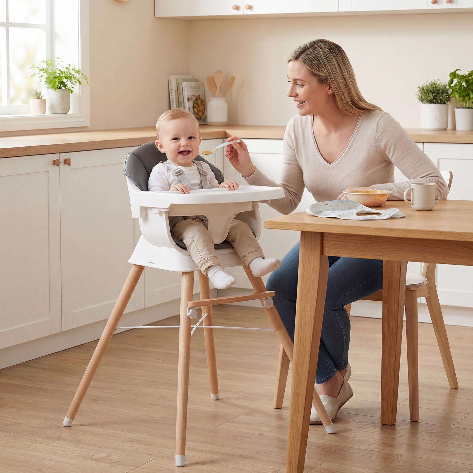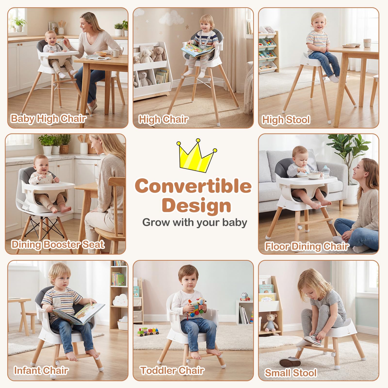 BABY JOY Convertible Wooden Highchairs for Babies and Toddlers