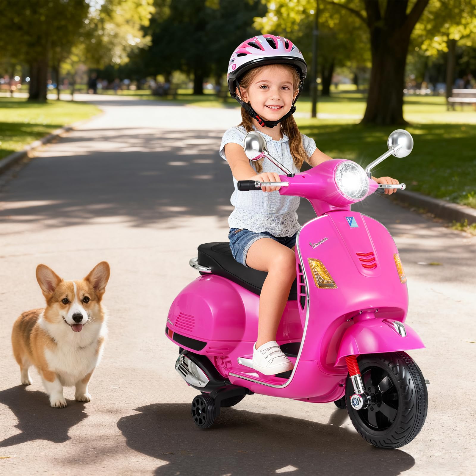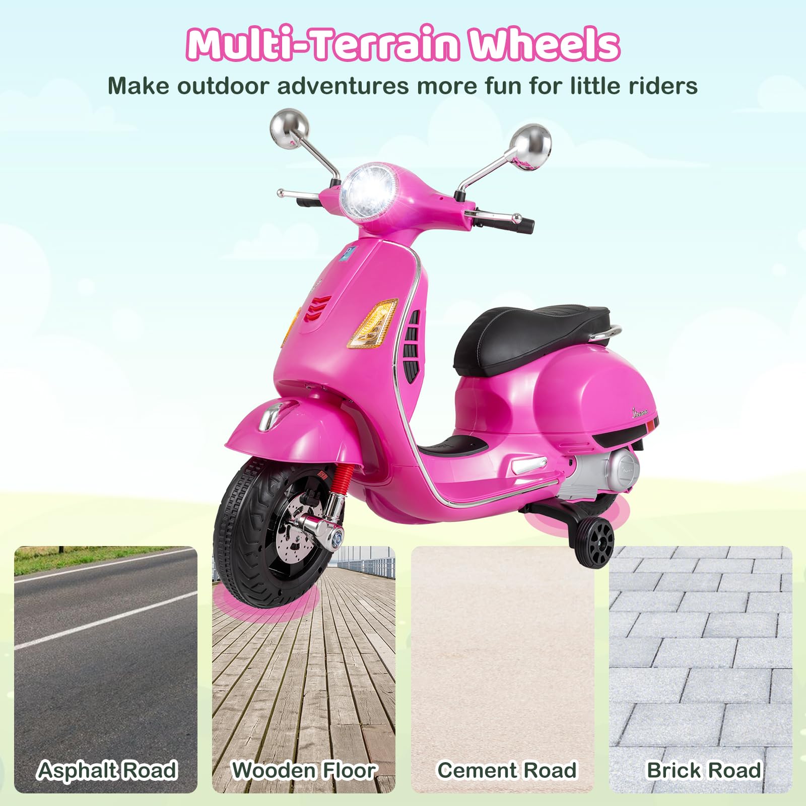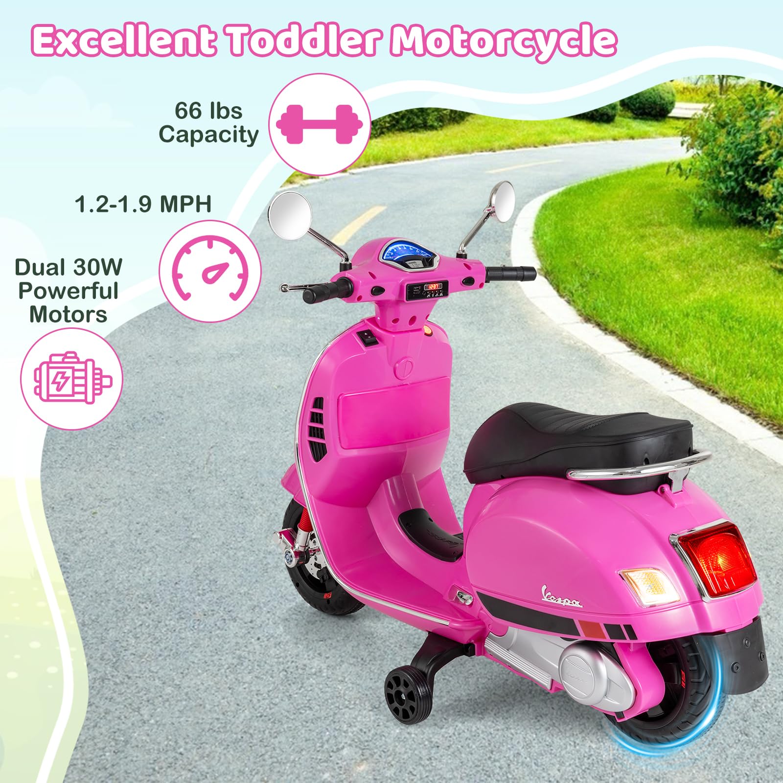 Costzon 12V Licensed Vespa Ride on Motorcycle with Training Wheels