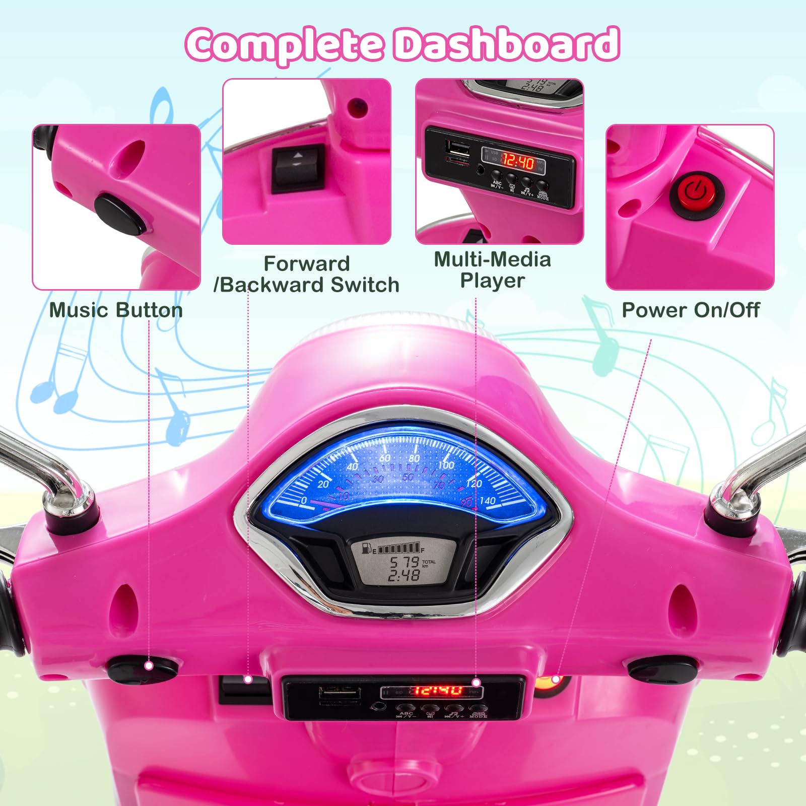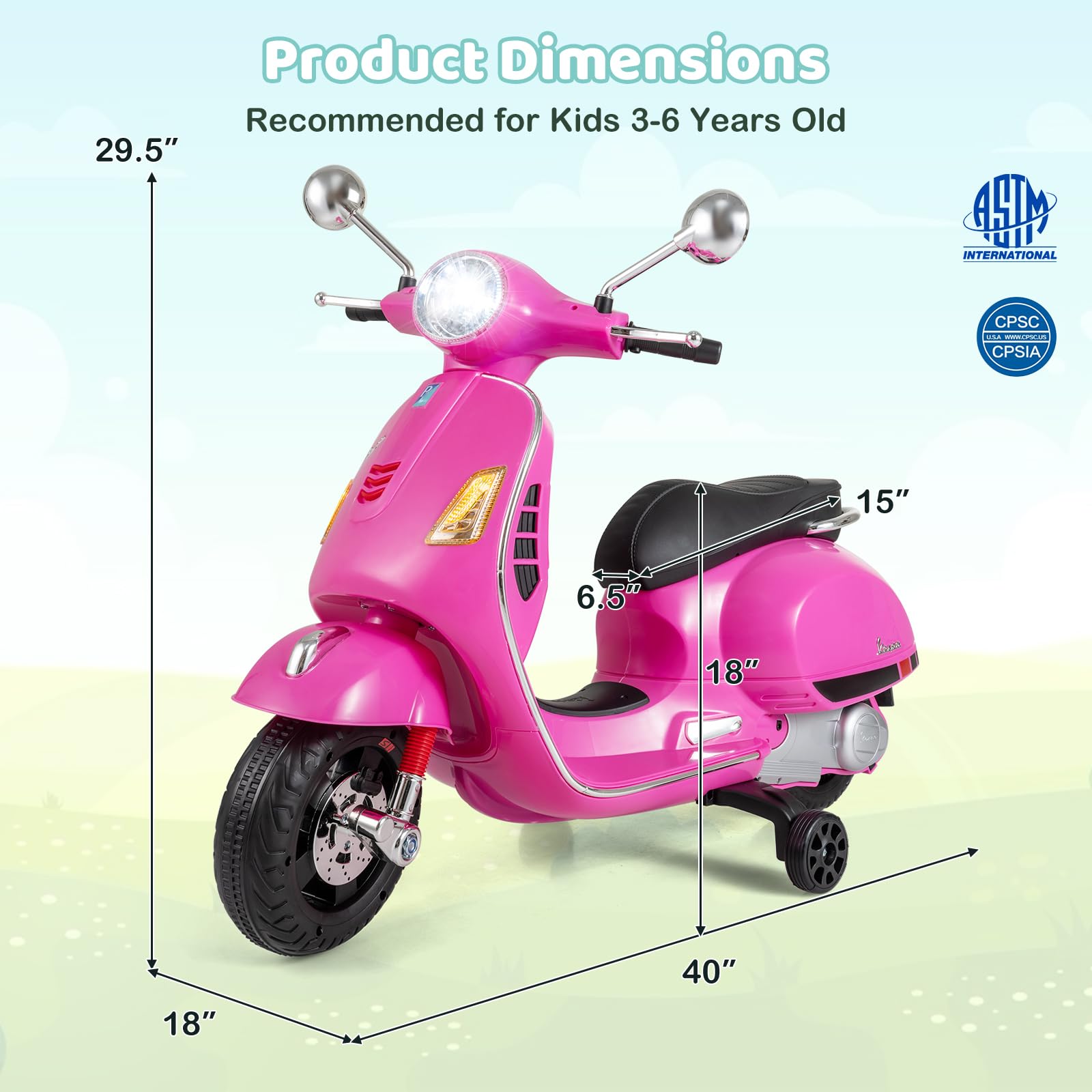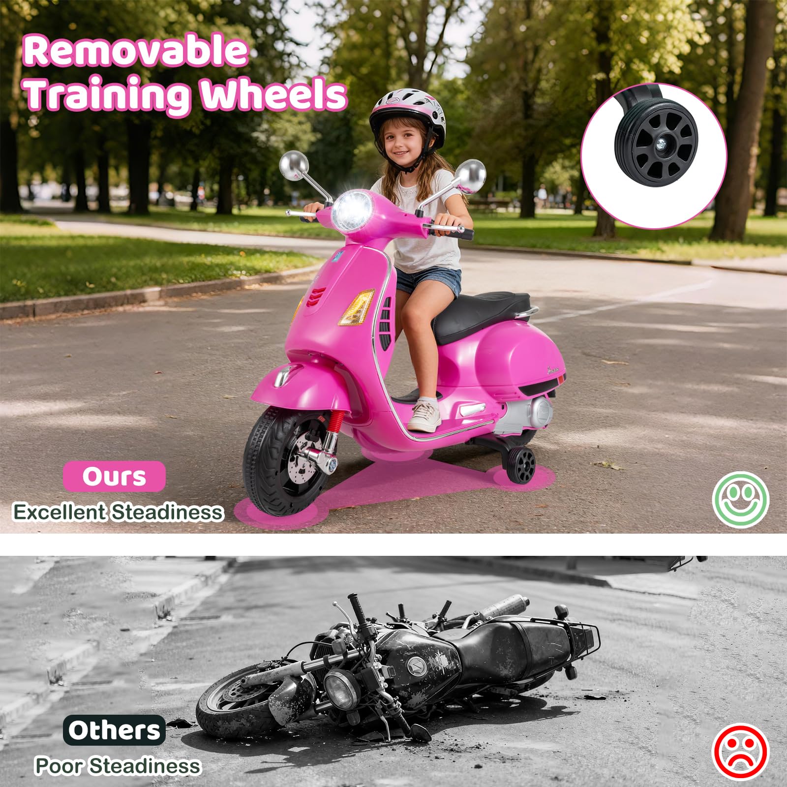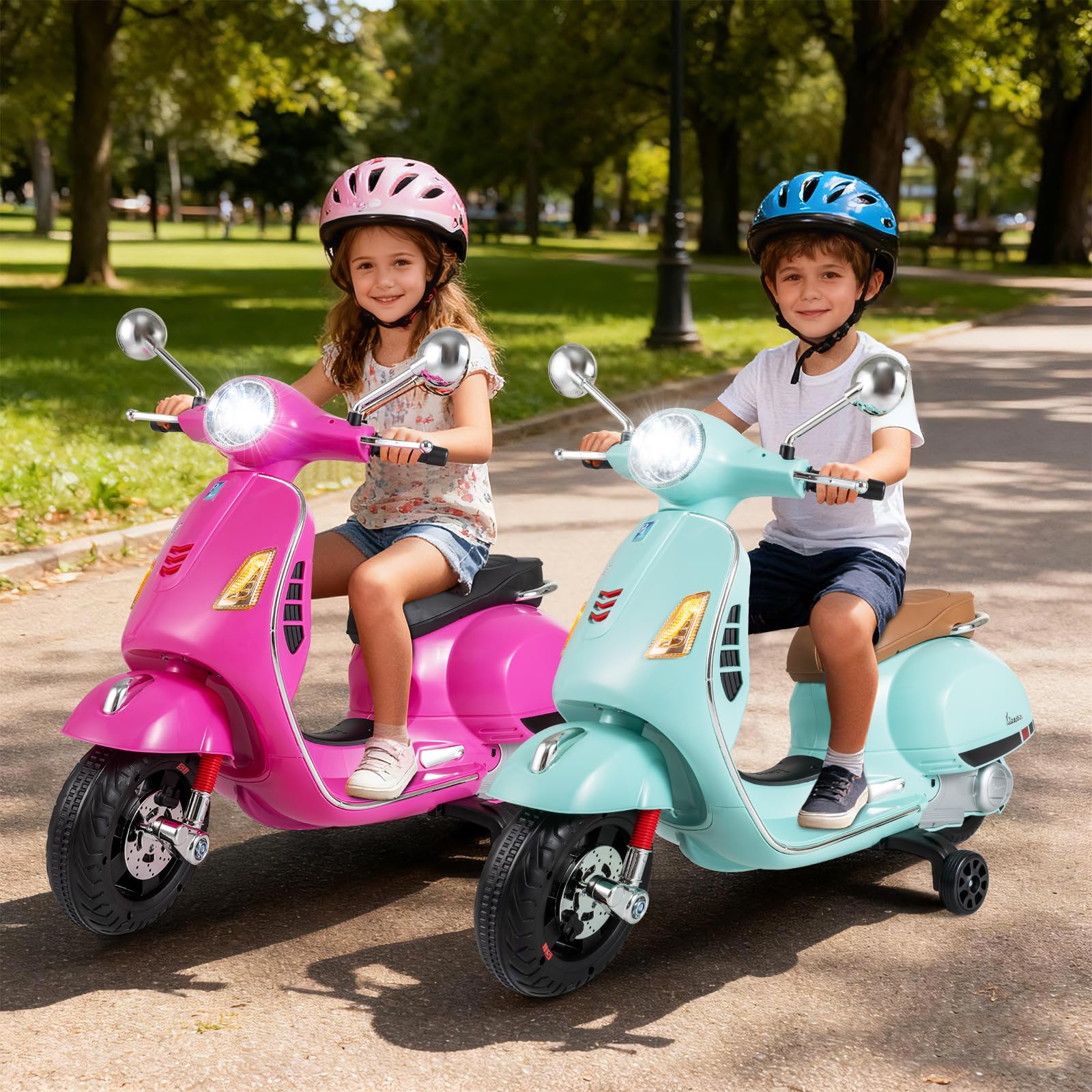Costzon 12V Licensed Vespa Ride on Motorcycle with Training Wheels