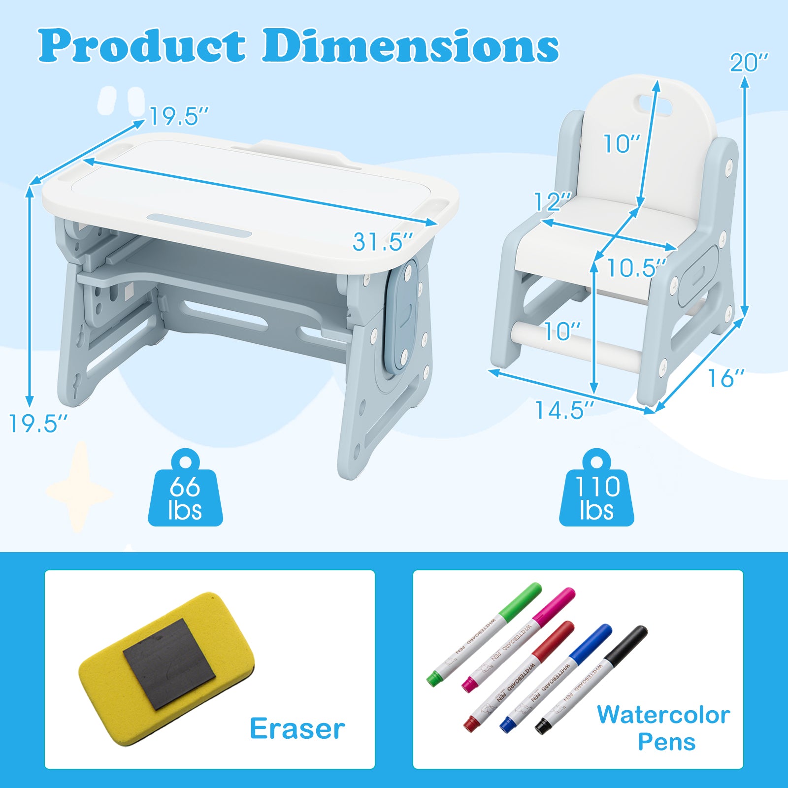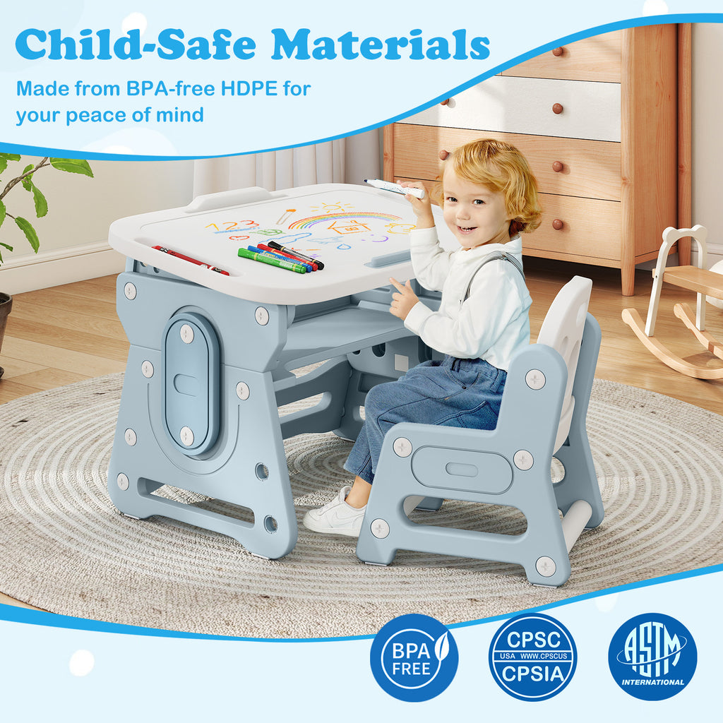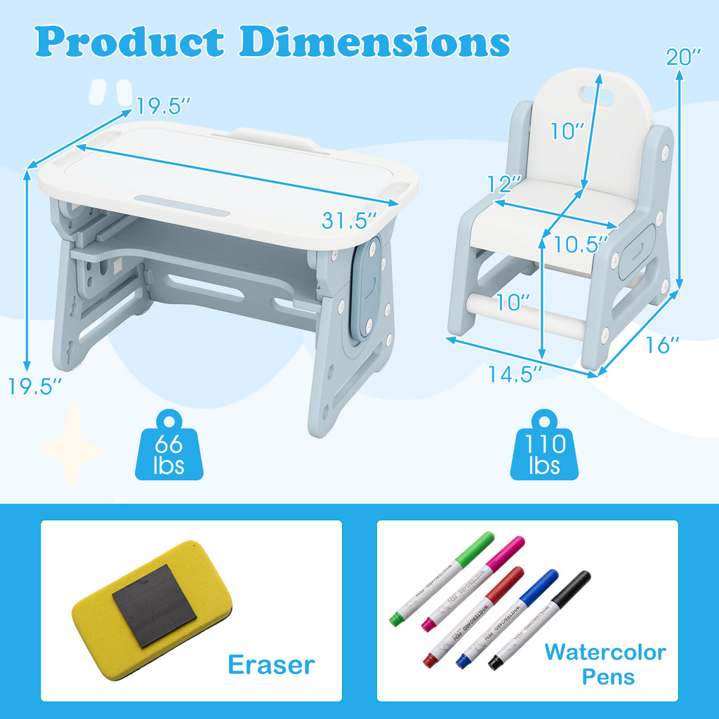 Costzon Kids Table and Chair Set Height Adjustable Art Desk Set