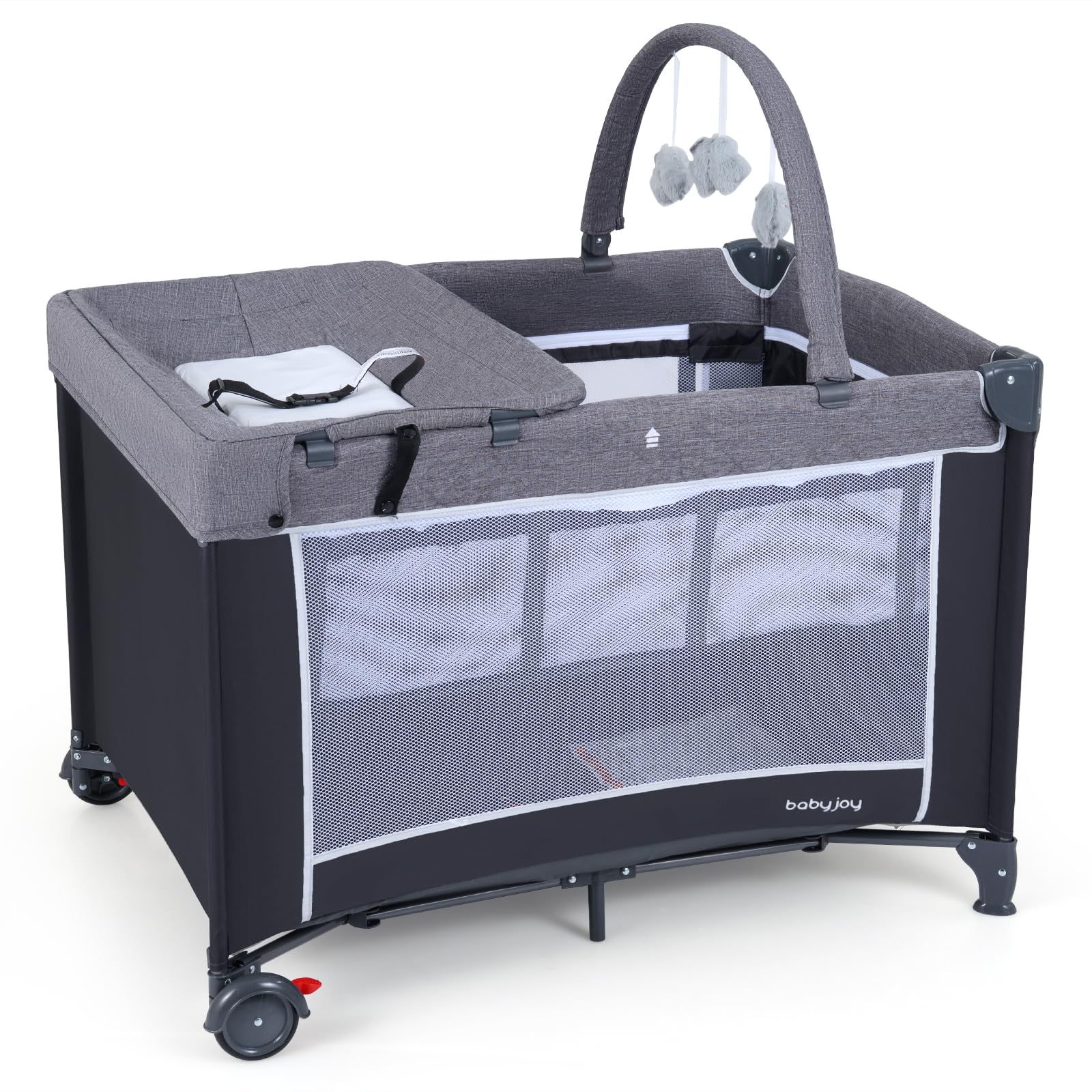 Costzon 3 in 1 Pack and Play Travel Baby Crib Bassinet Bed with Bassinet Changing Table with Safety Belt