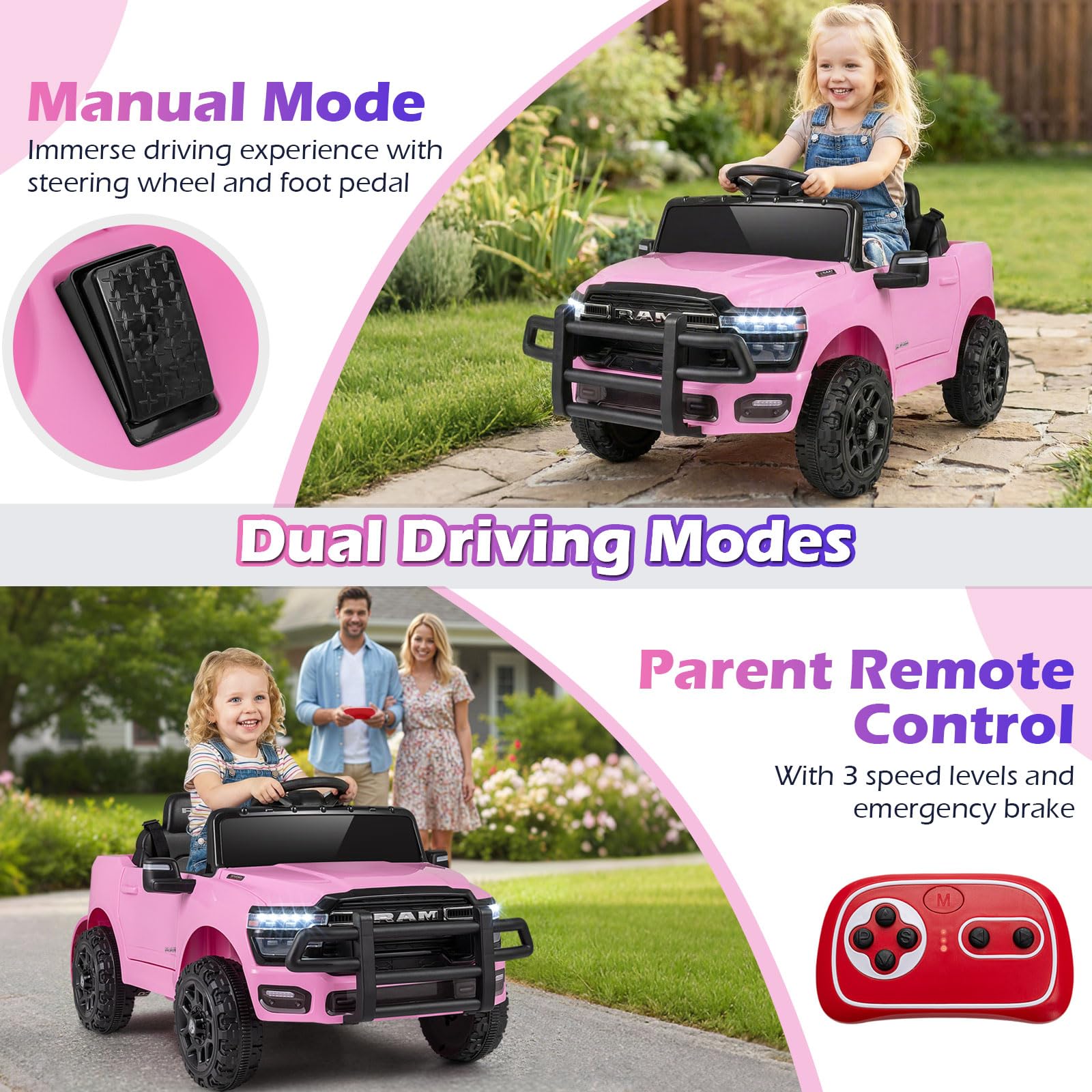 Costzon 12V Kids Licensed RAM Kids Electric Vehicle w/Remote Control