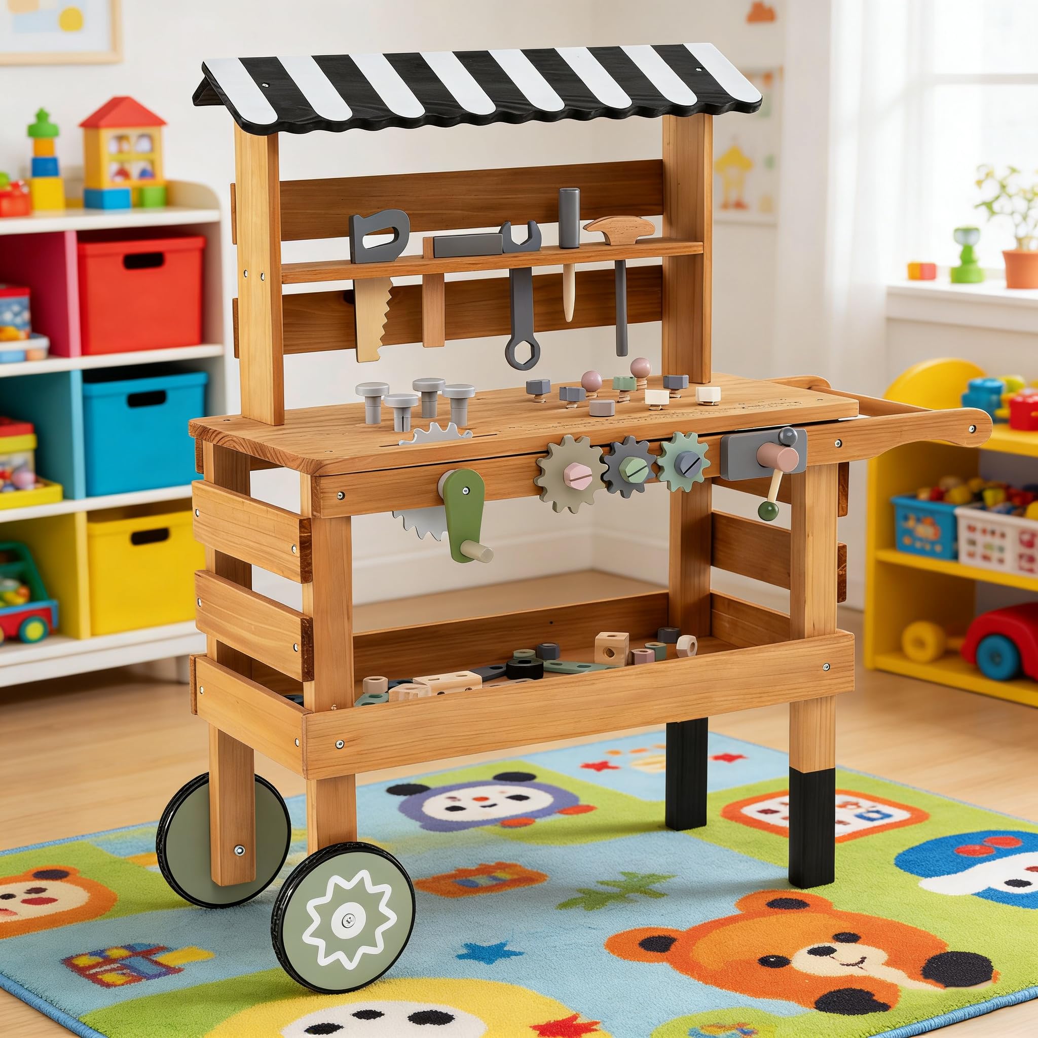 Costzon 2 in 1 Wooden Kids Workbench w/Play Tools Set