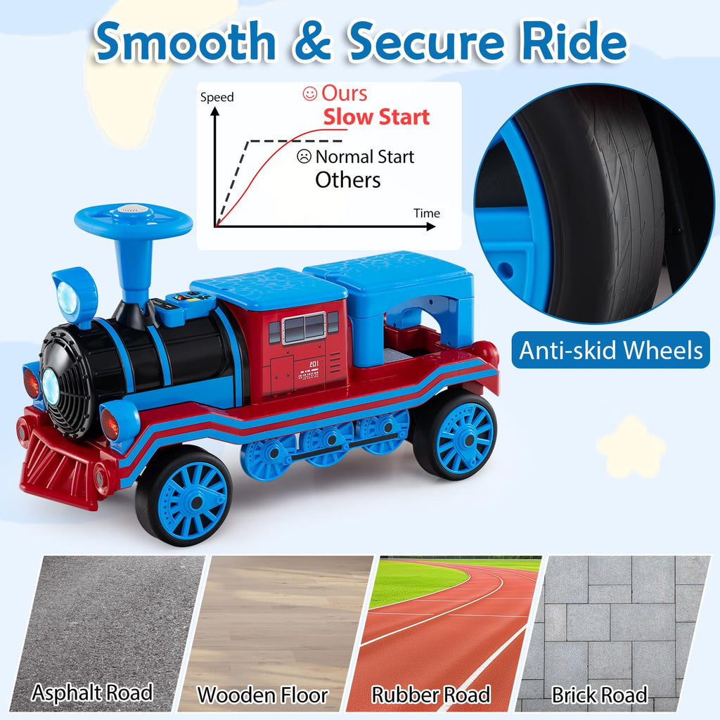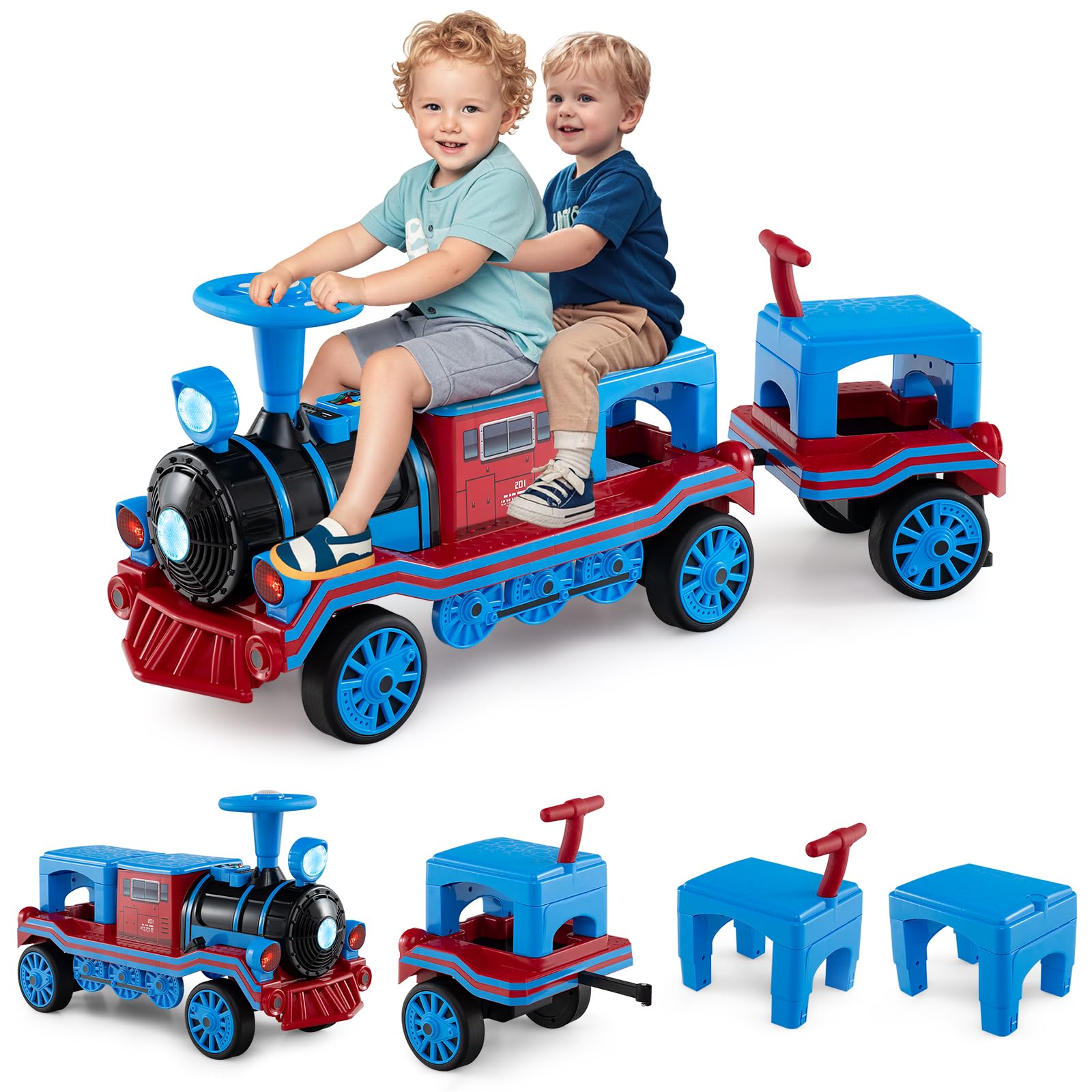 Costzon 3-Seater Ride on Train Set 12V Ride on Toy Car w/2 Removable Chairs