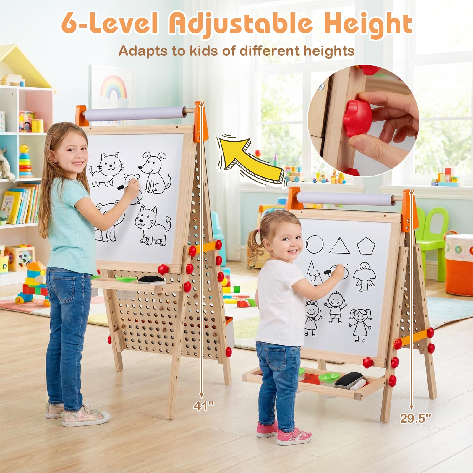 Costzon 4-in-1 Easel for Kids Double-Sided Chalkboard and Magnetic Whiteboard with Paper Roll