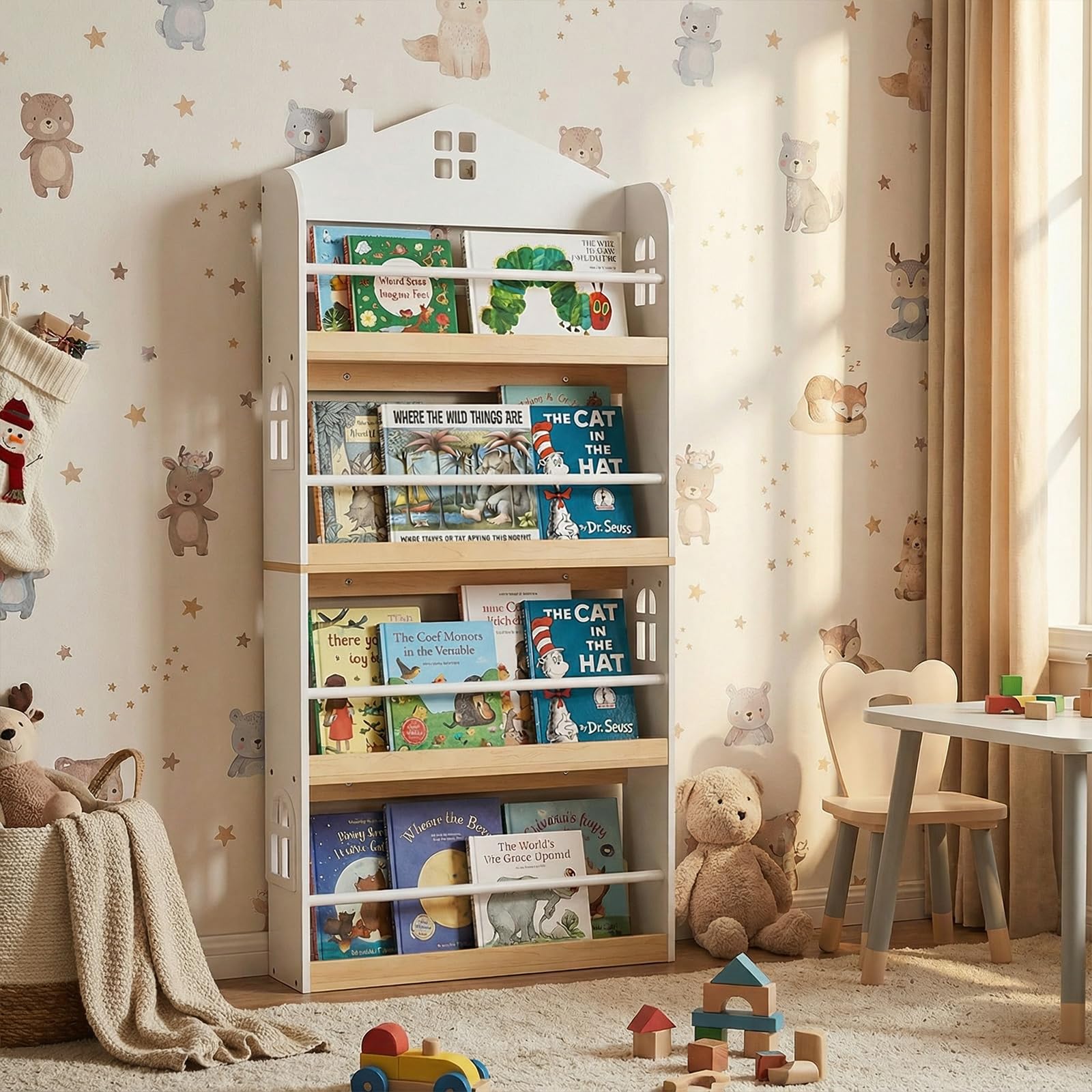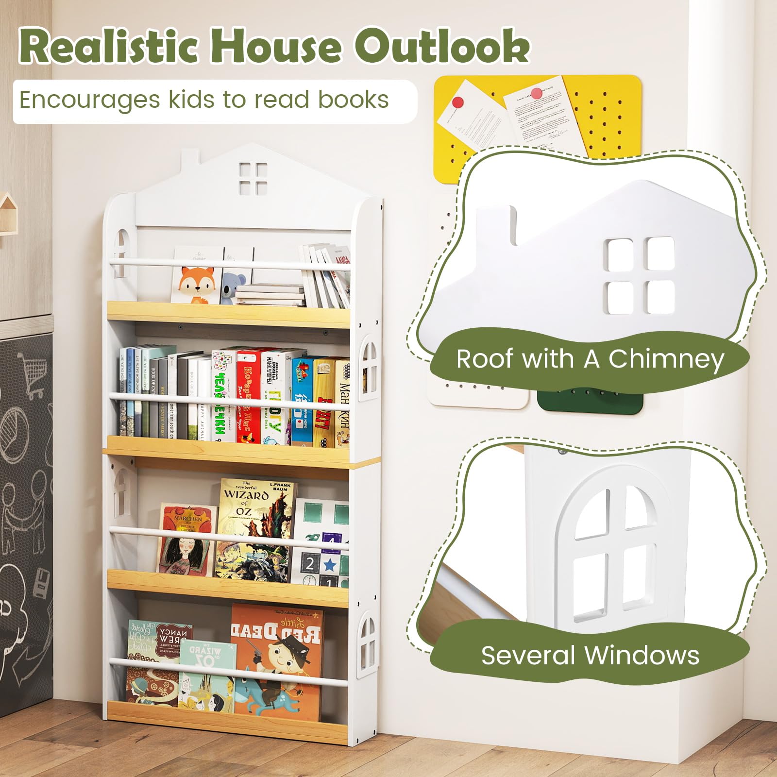 Costzon 4-Tier Kids Bookshelf Wall Mounted