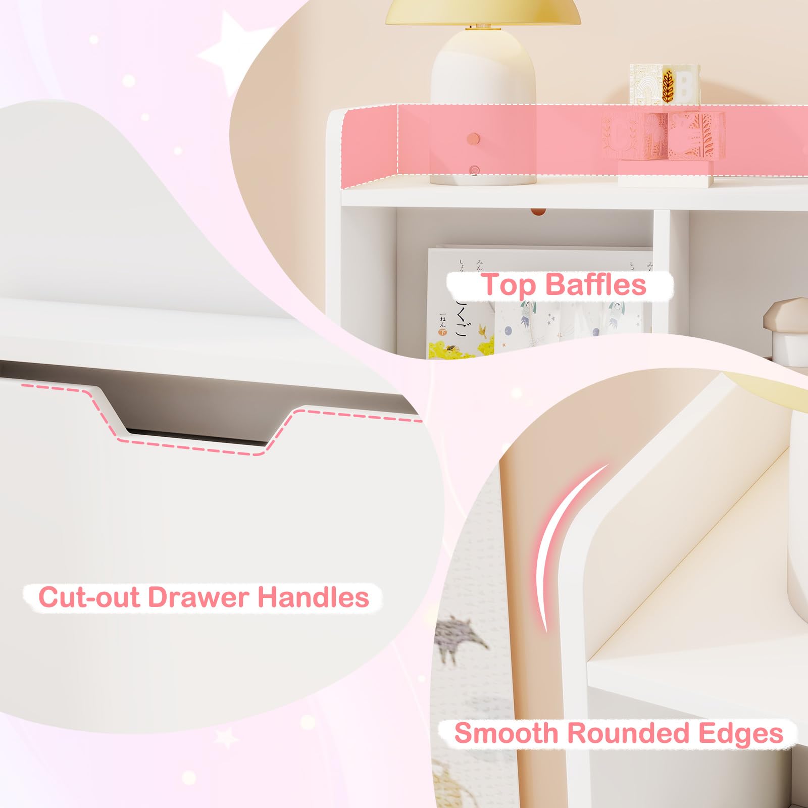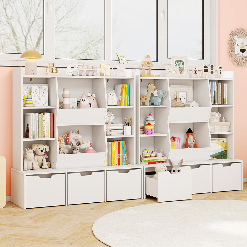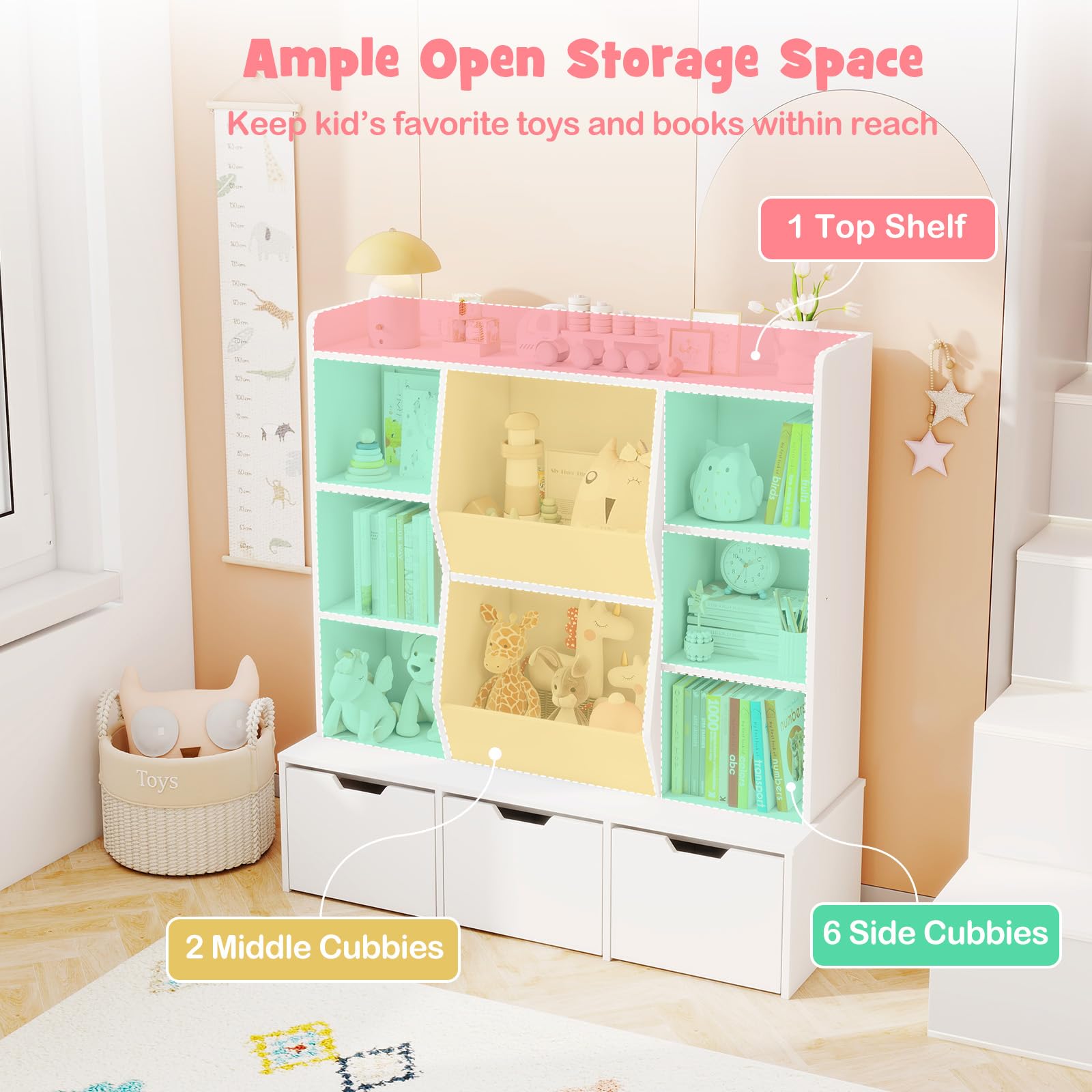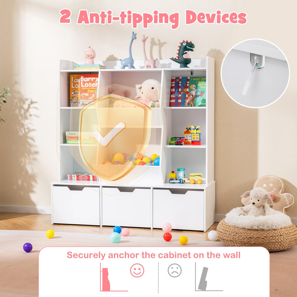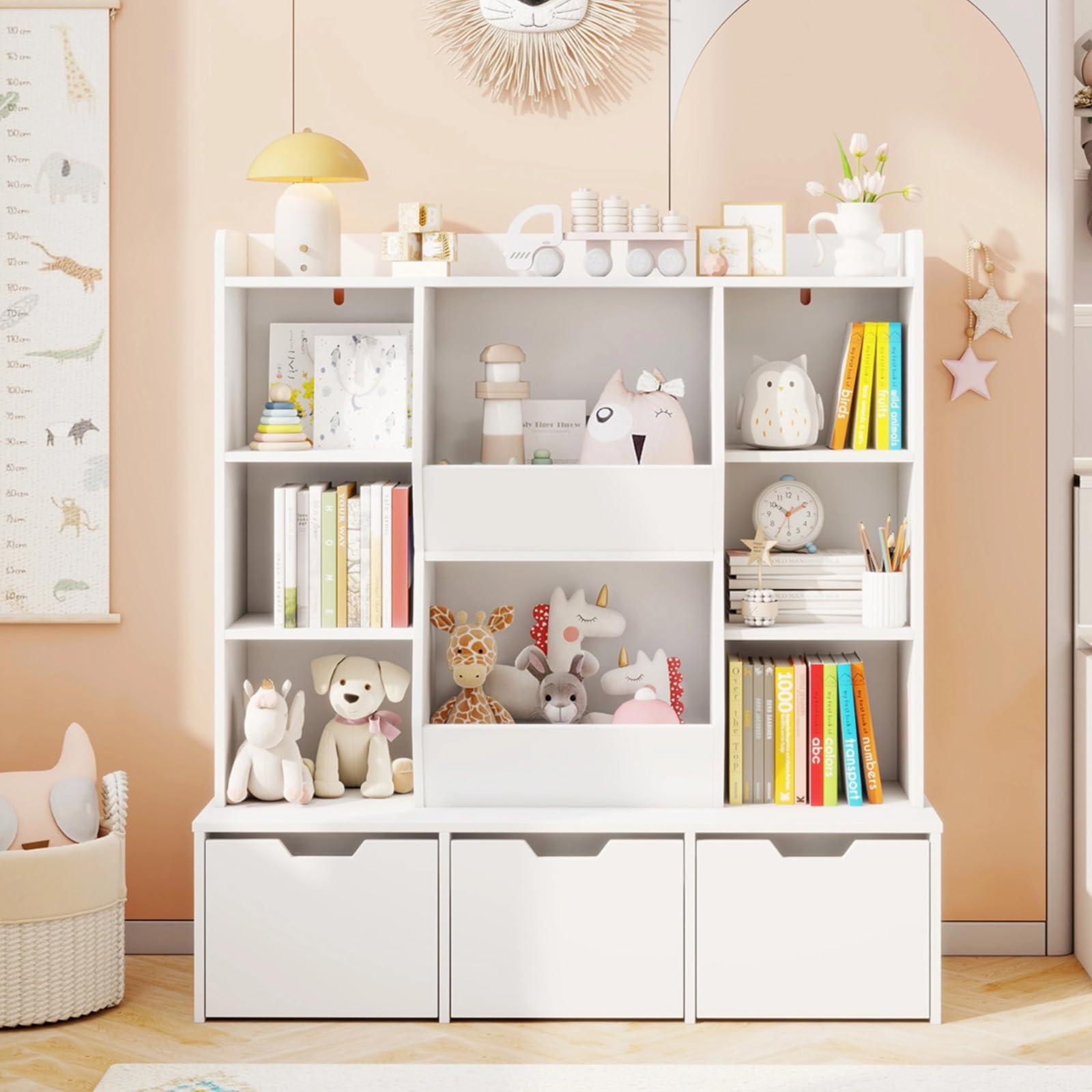 Costzon 47" Toy Storage Organizer Large Kids Bookcase with 3 Movable Drawers & 8 Storage Cubbies