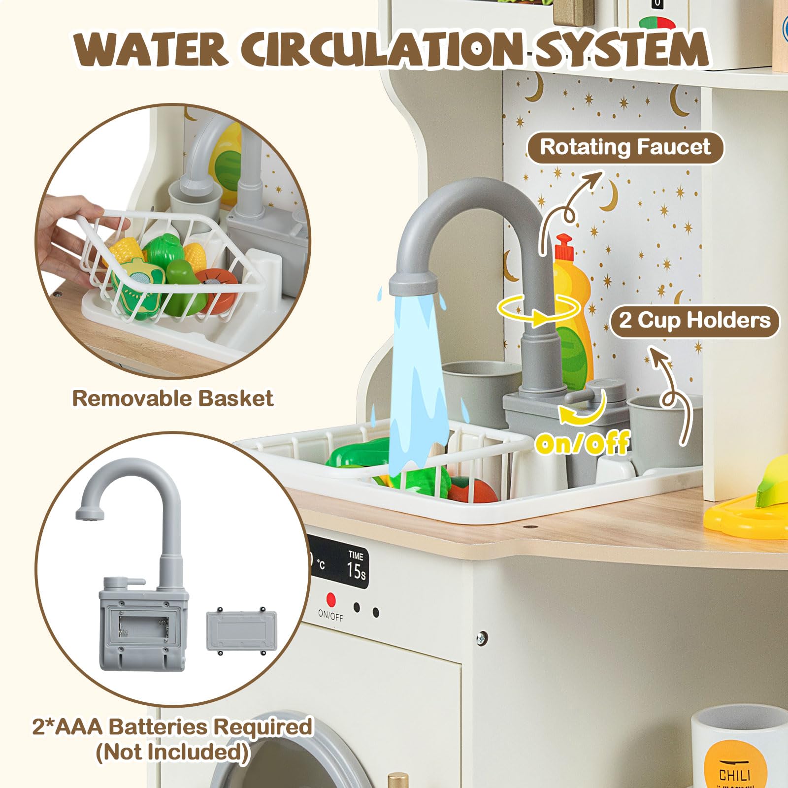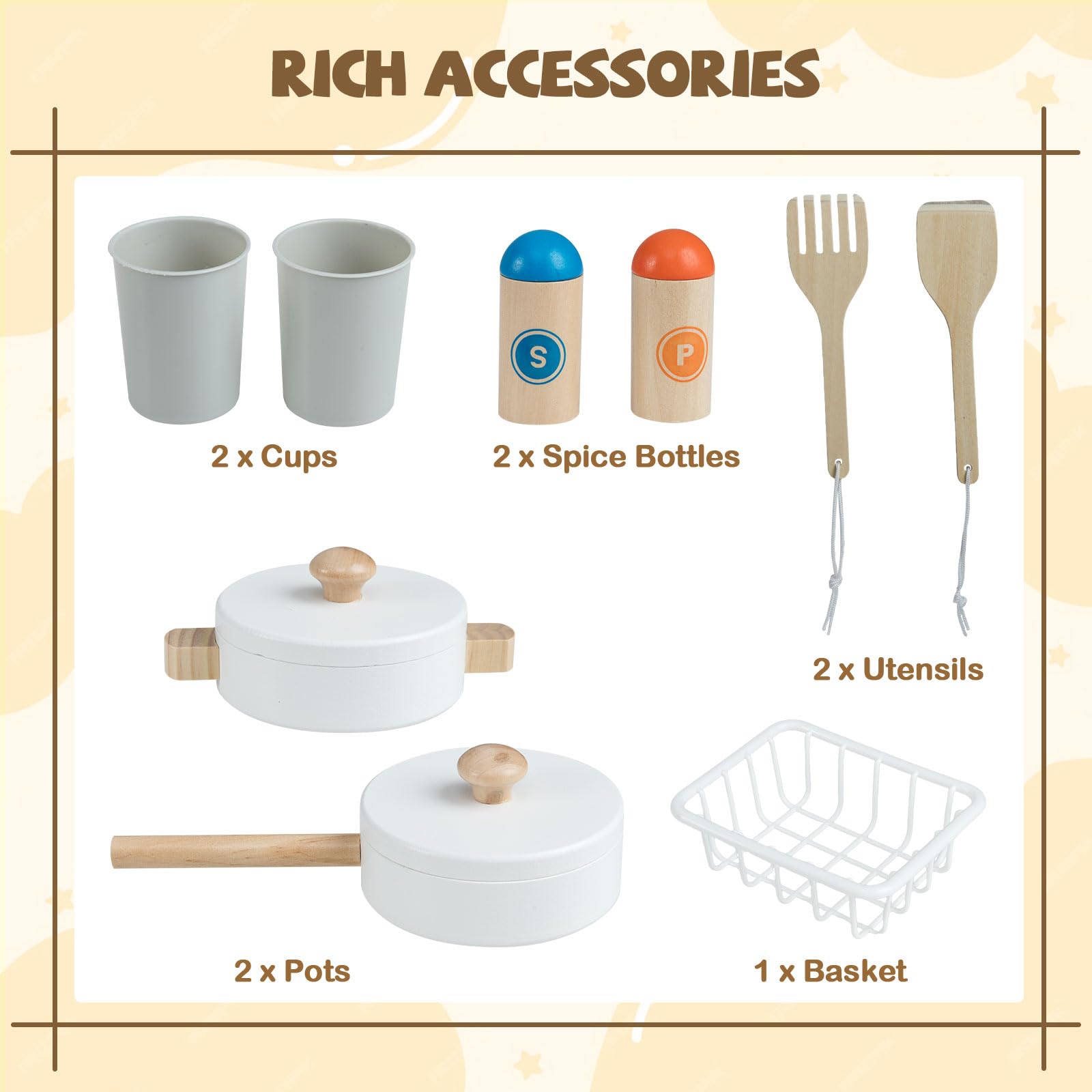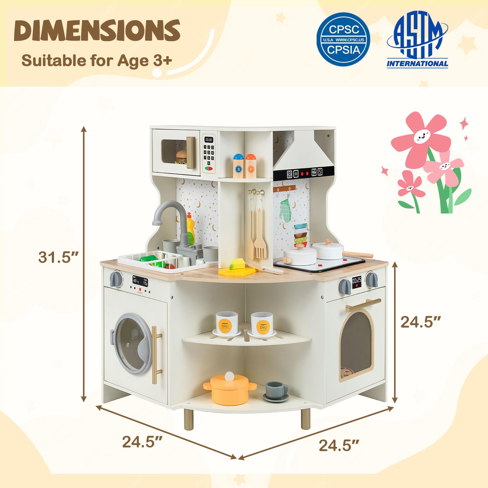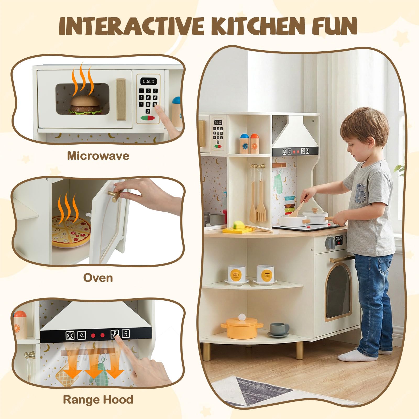 Costzon Corner Play Kitchen Wooden Toy Cooking Set