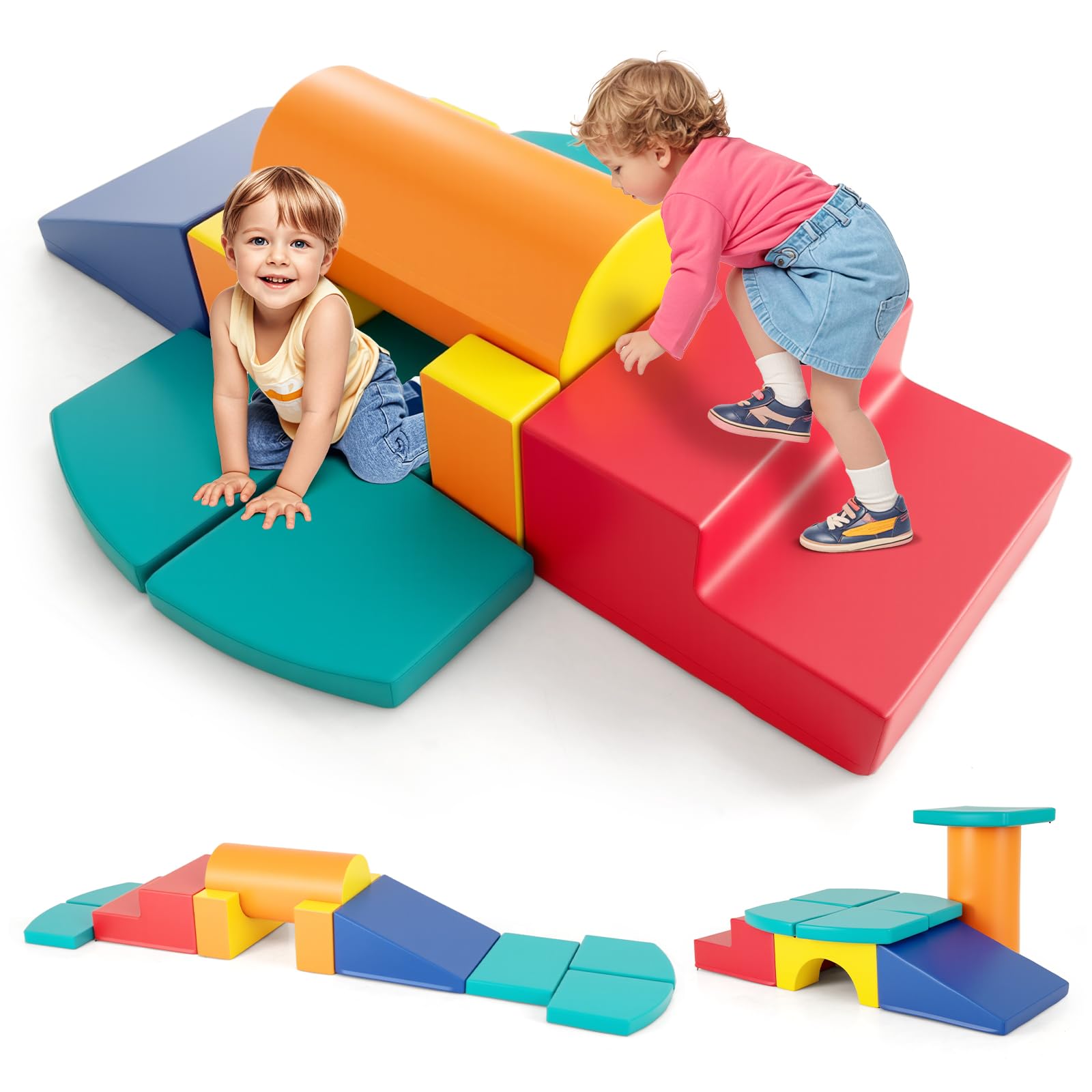 Costzon Foam Climbing Blocks for Toddlers 10 Pieces Soft Foam PU Leather Lightweight Baby Activity Play Set