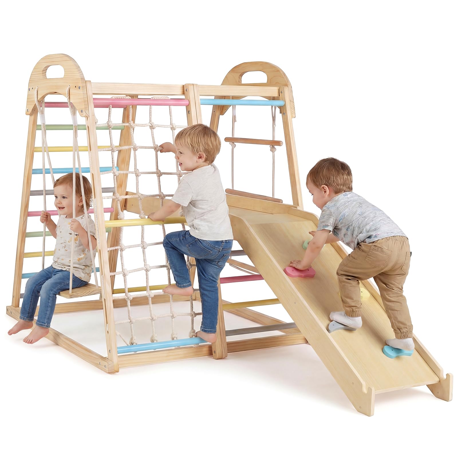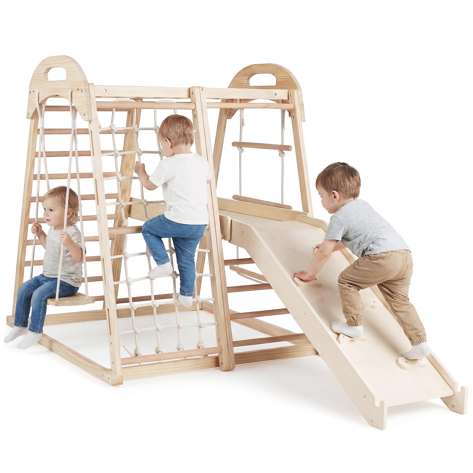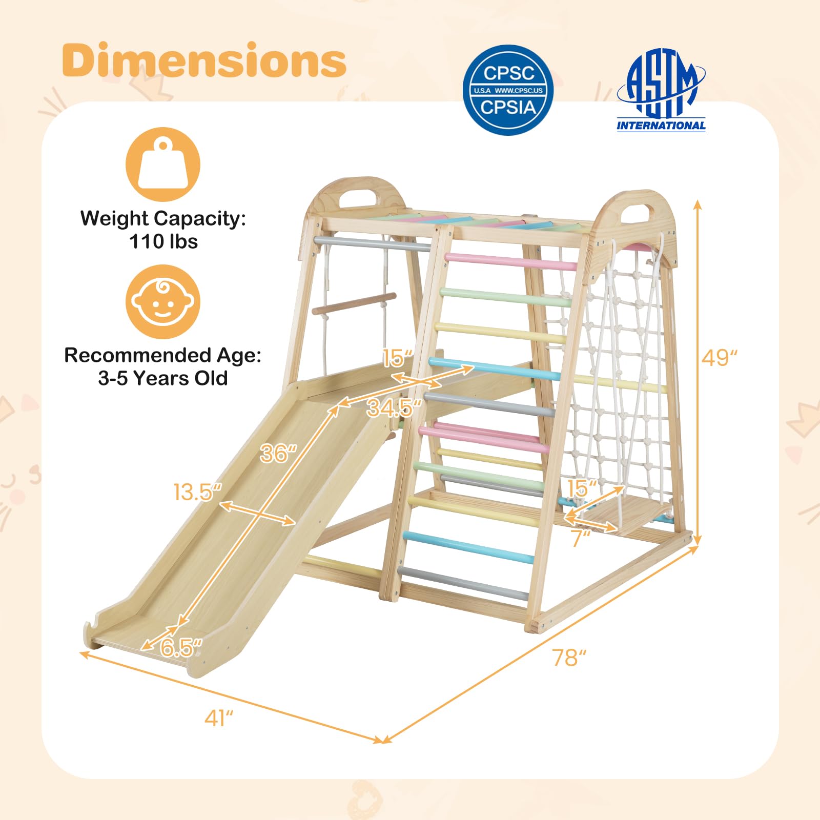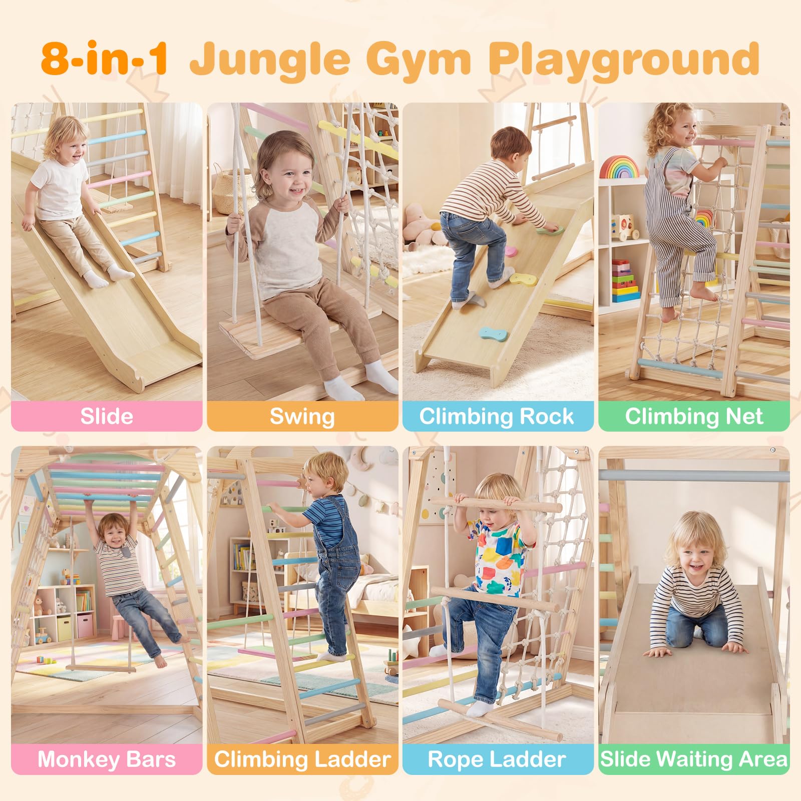 Costzon Indoor Playground 8-in-1 Kids Montessori Jungle Gym with Baby Slid