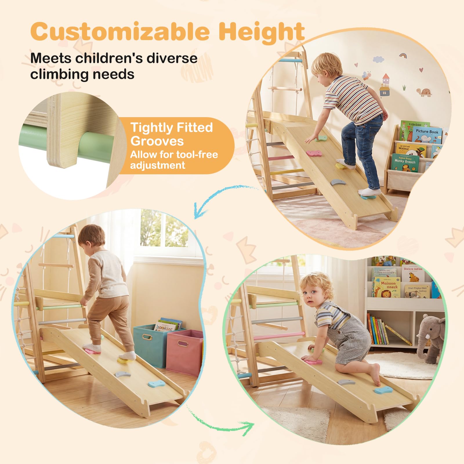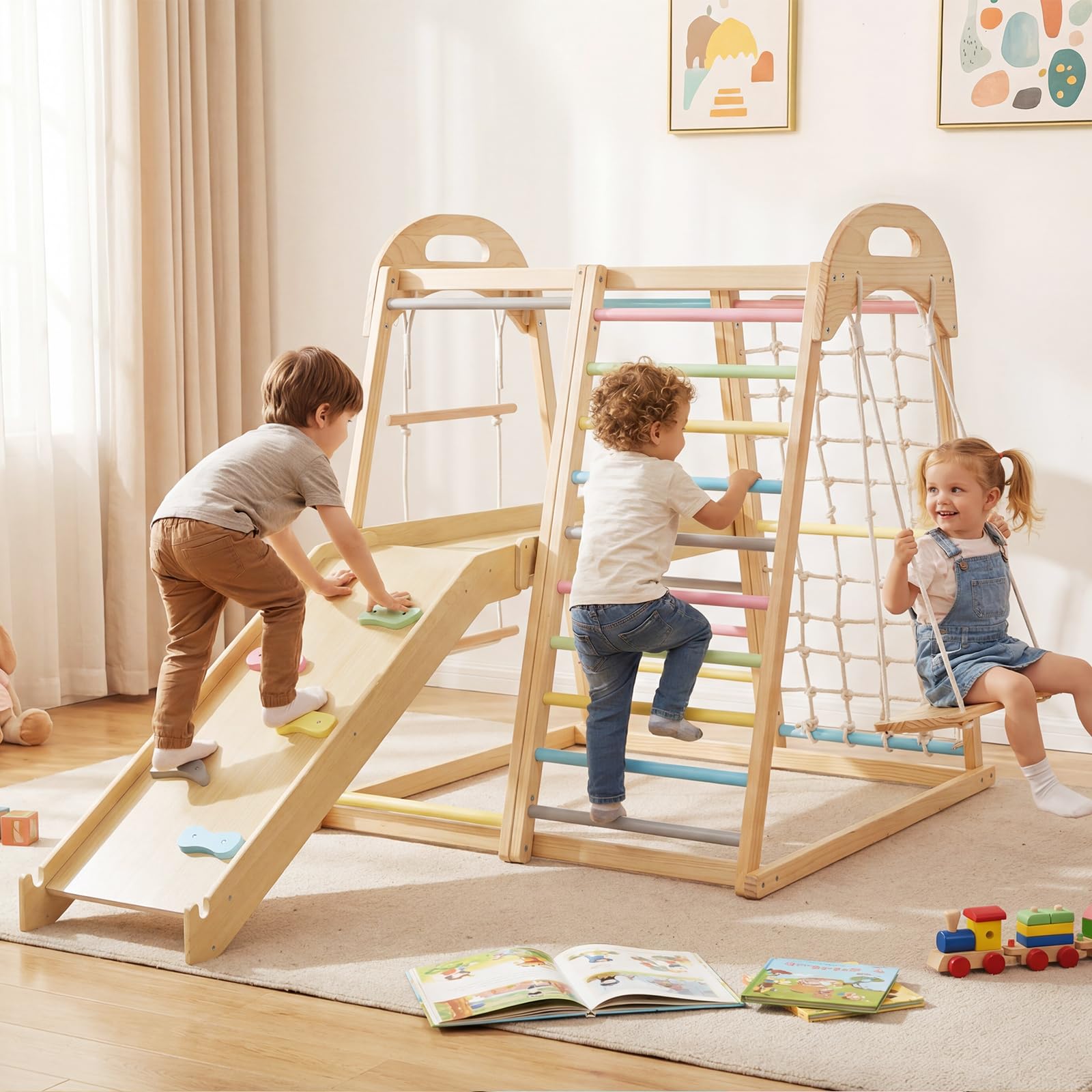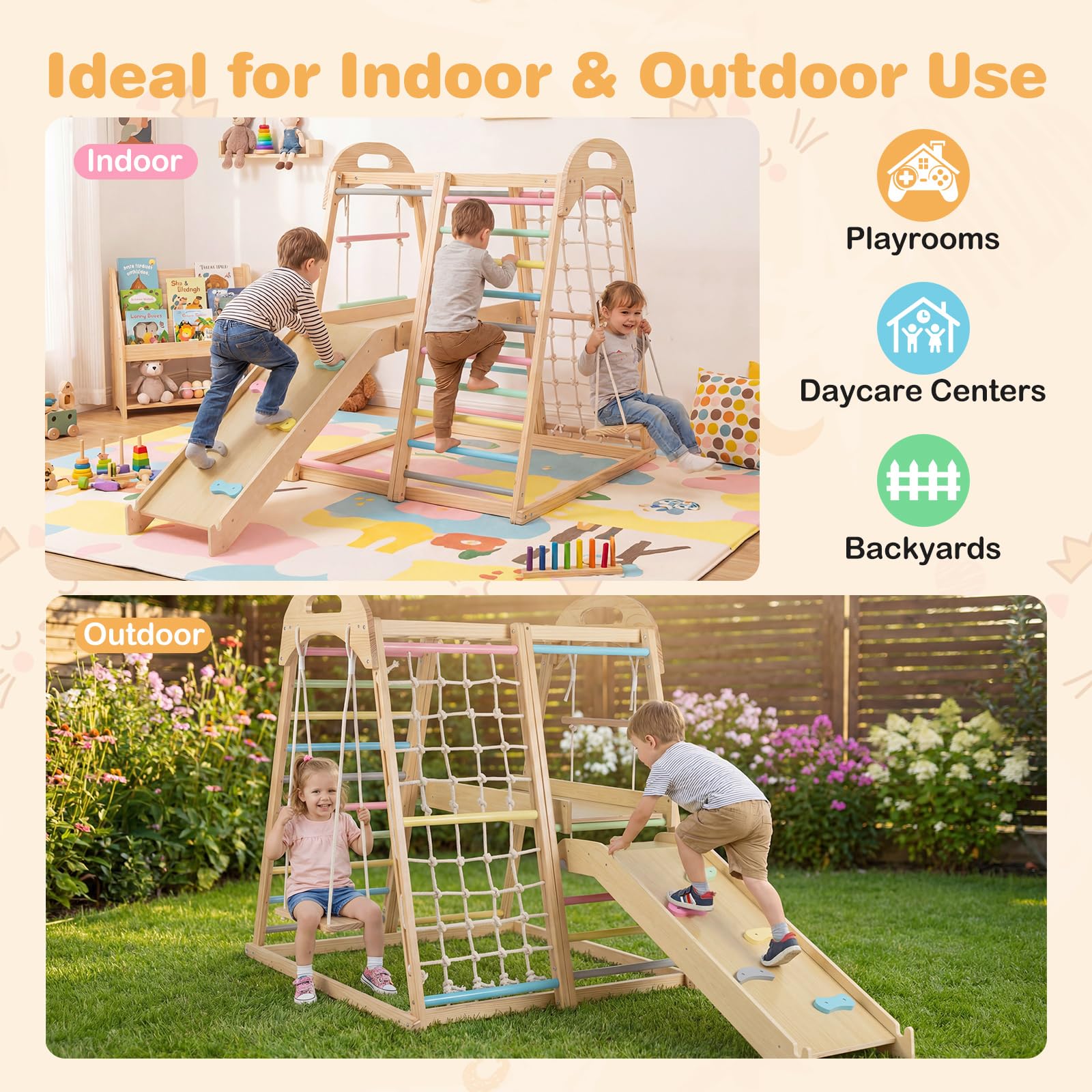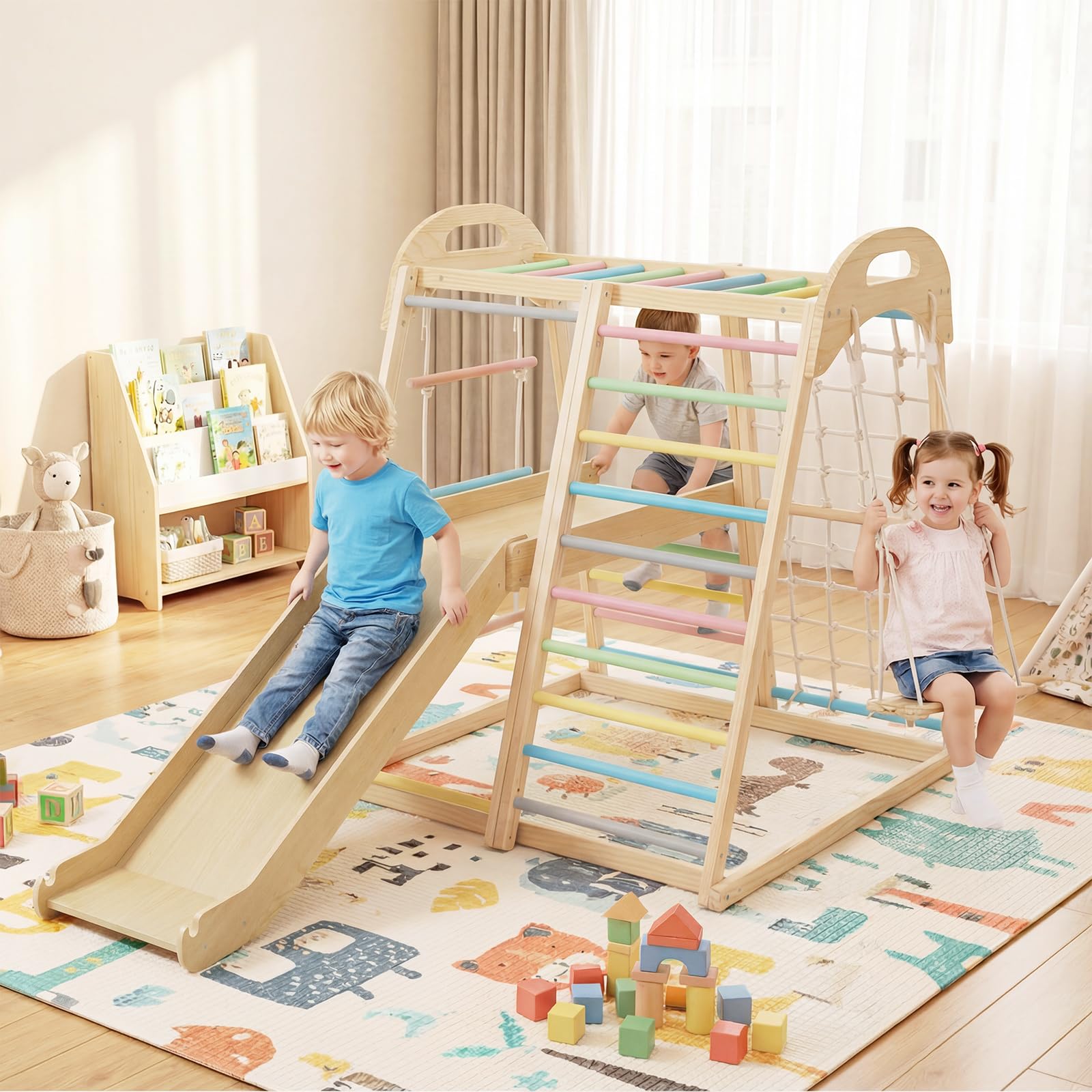 Costzon Indoor Playground 8-in-1 Kids Montessori Jungle Gym with Baby Slid