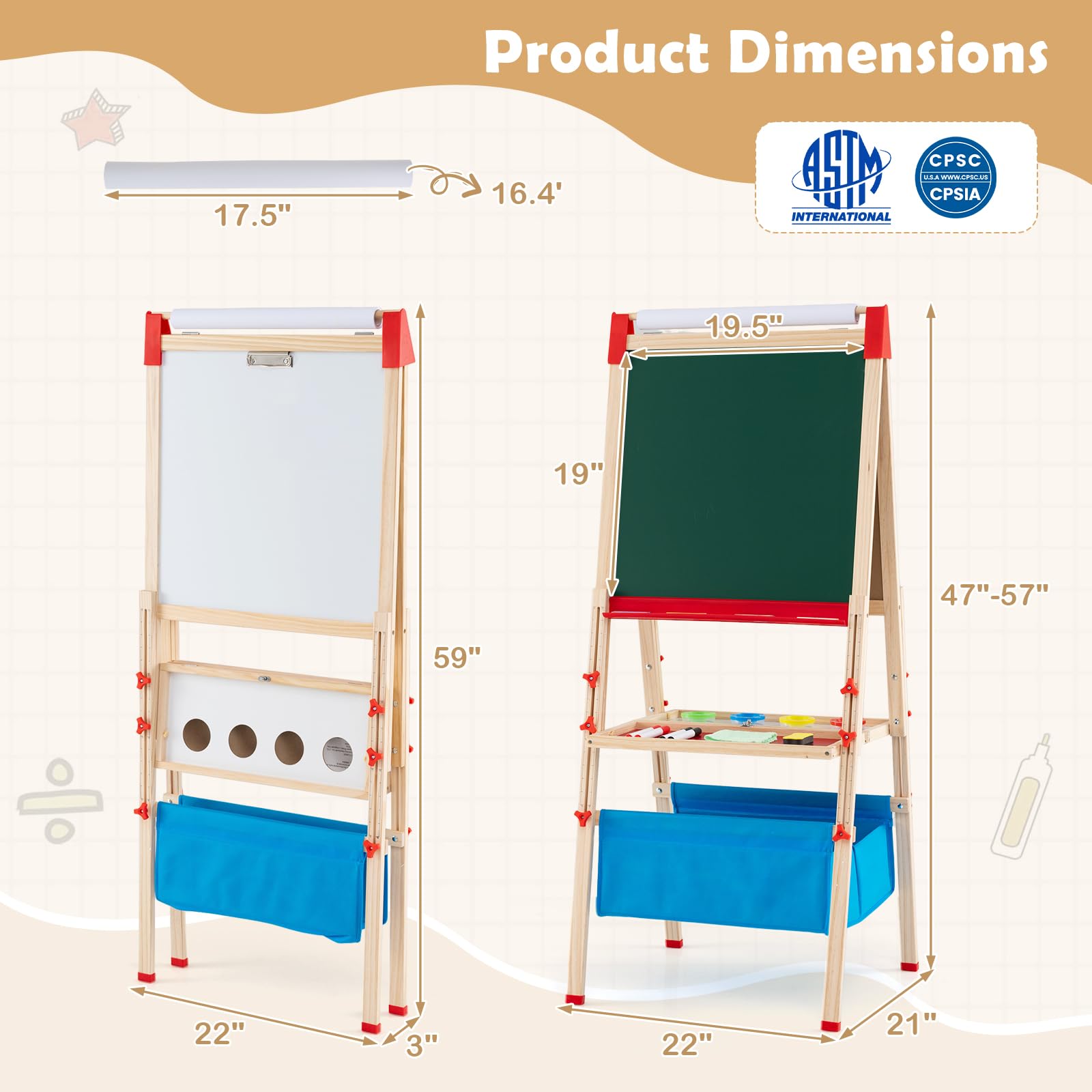 Costzon Kids Adjustable Foldable Double-Sided Easel