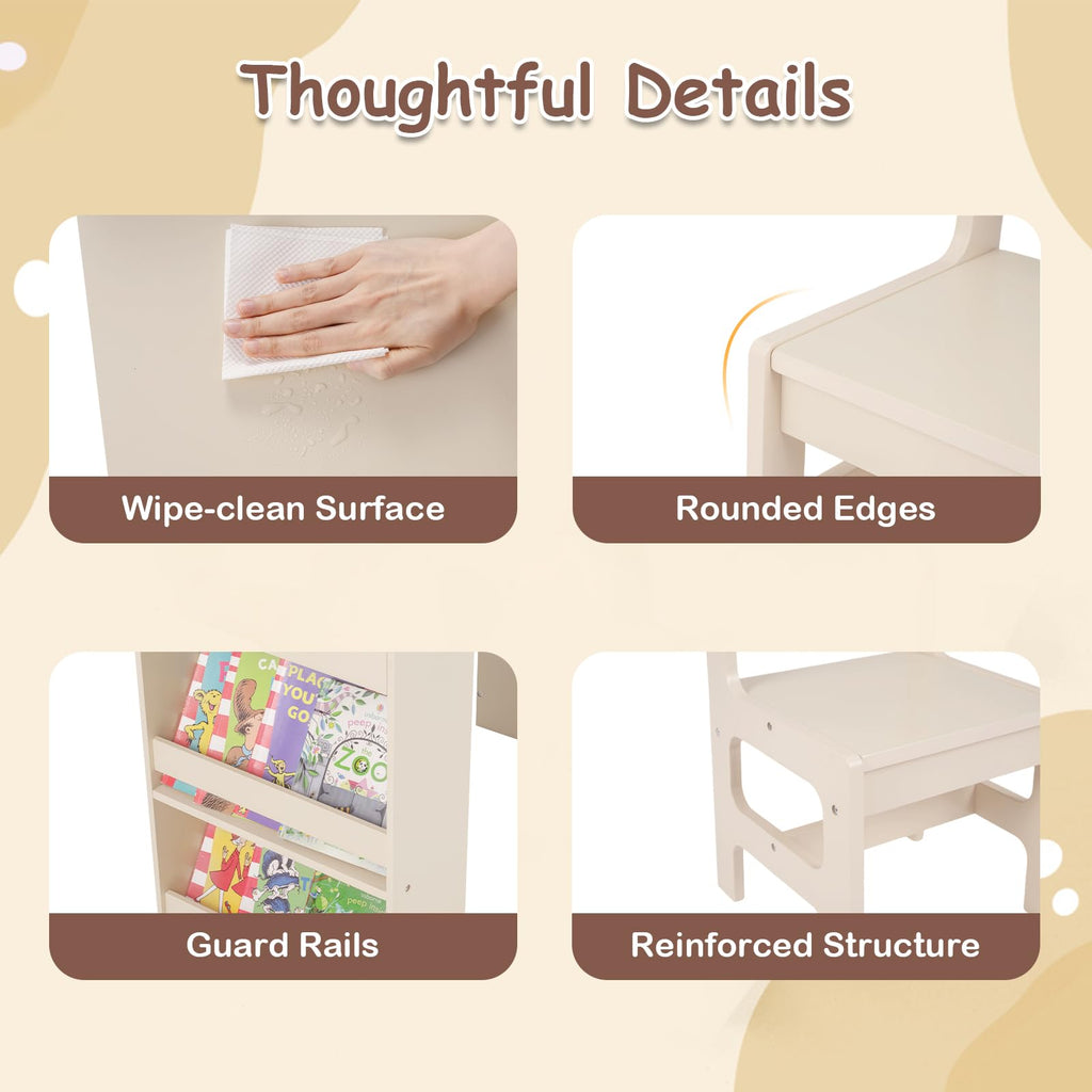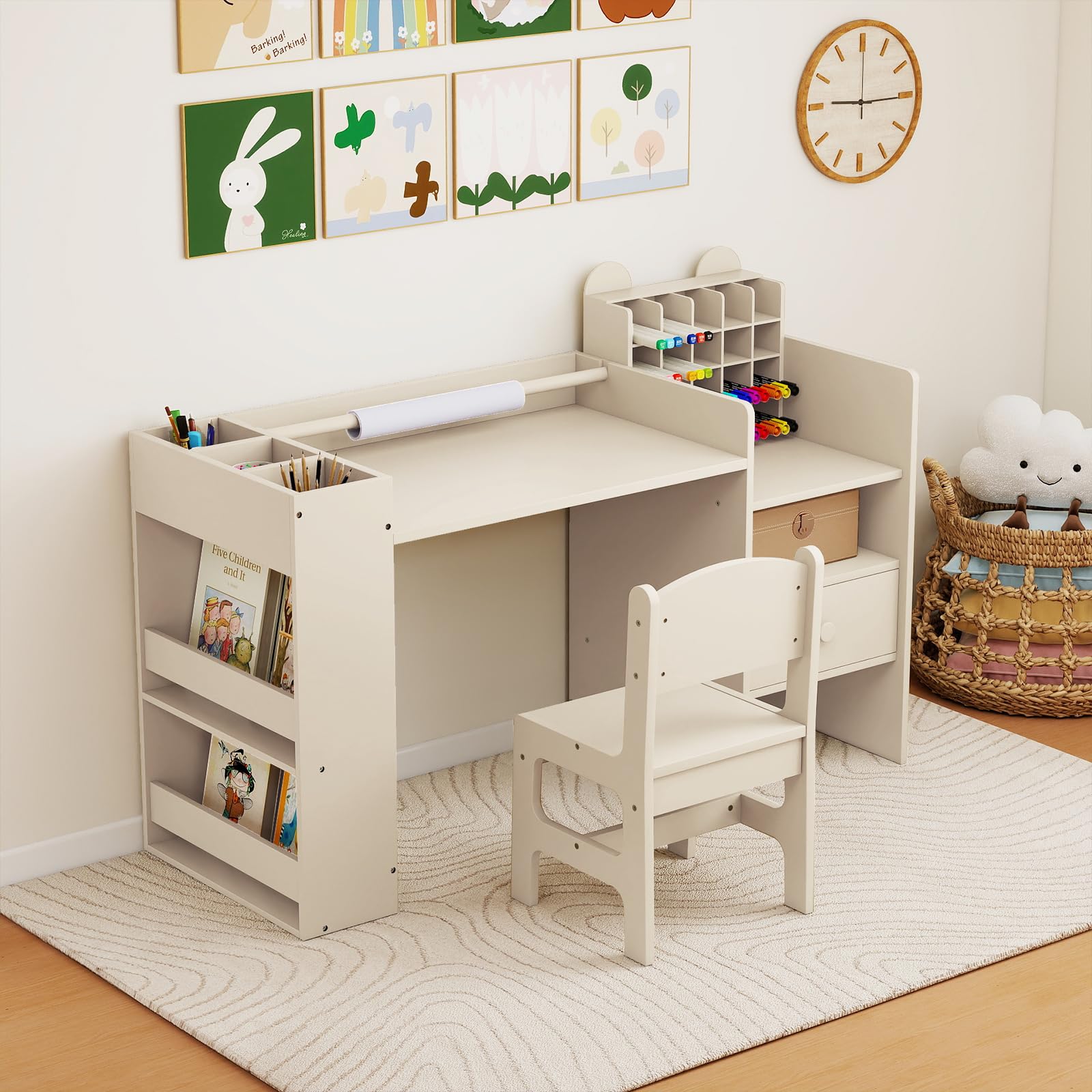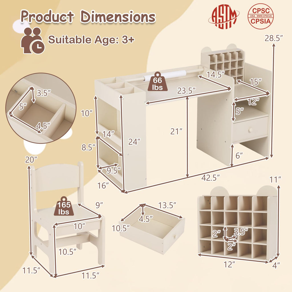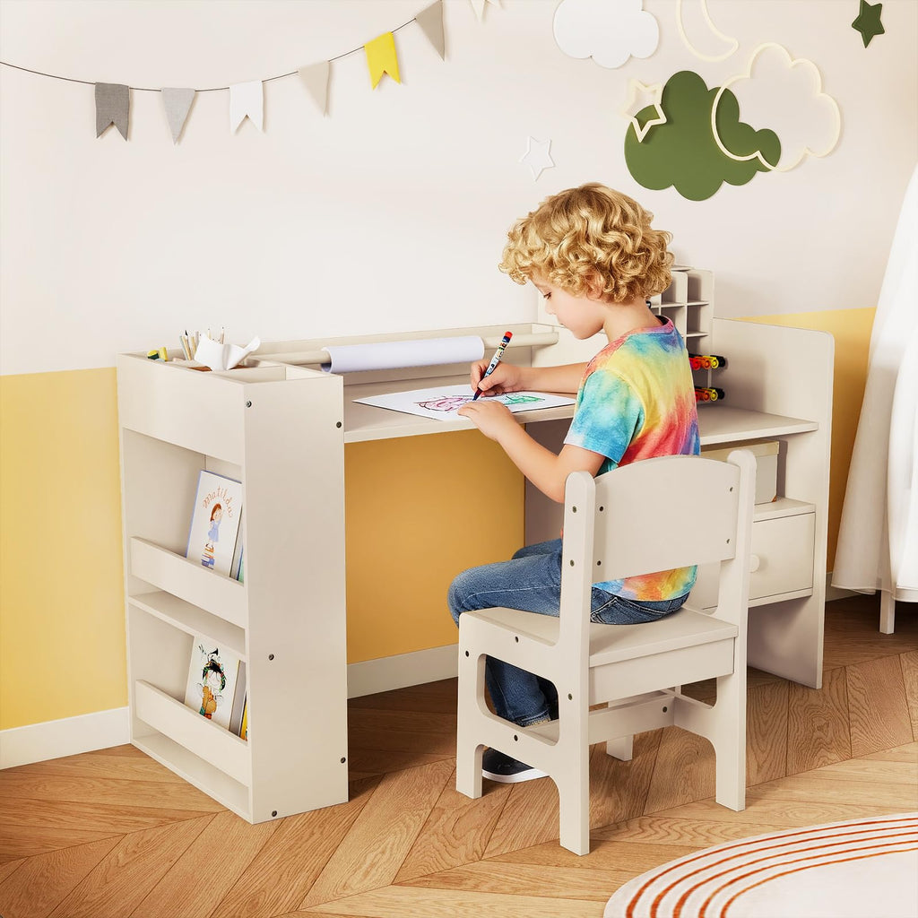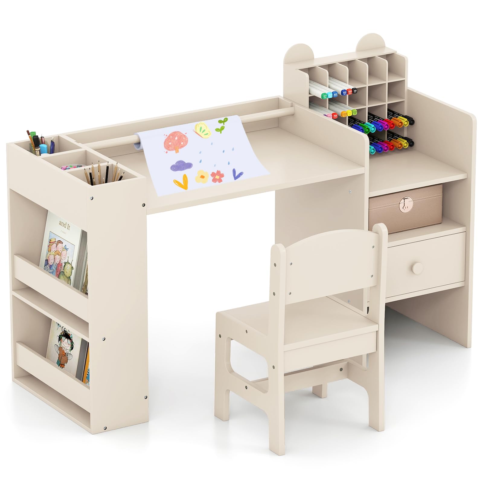 Costzon Kids Desk and Chair Set Art Activity Desk Set with Detachable Paper Roll Holder