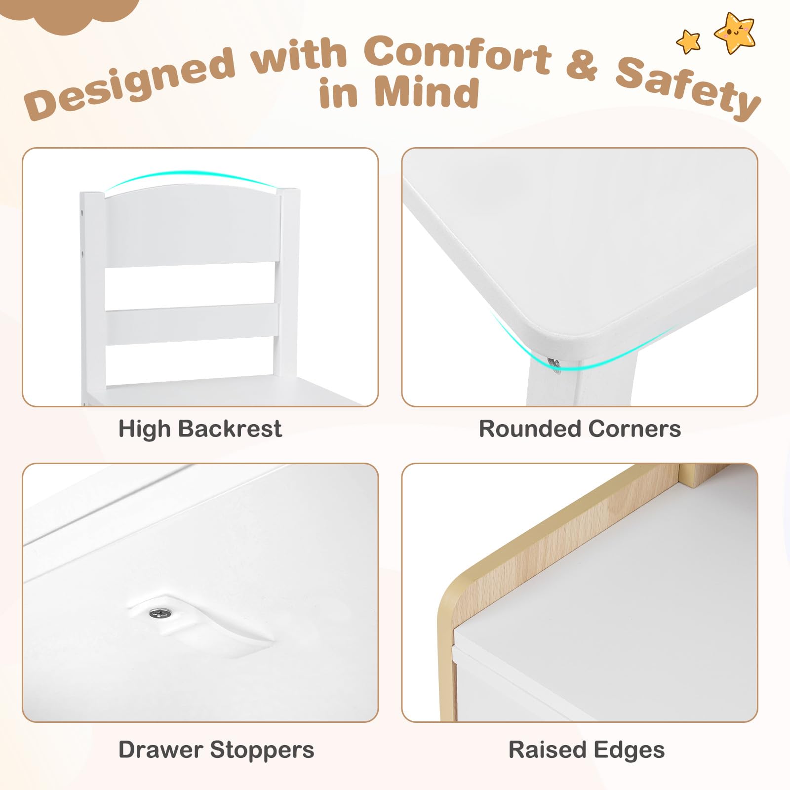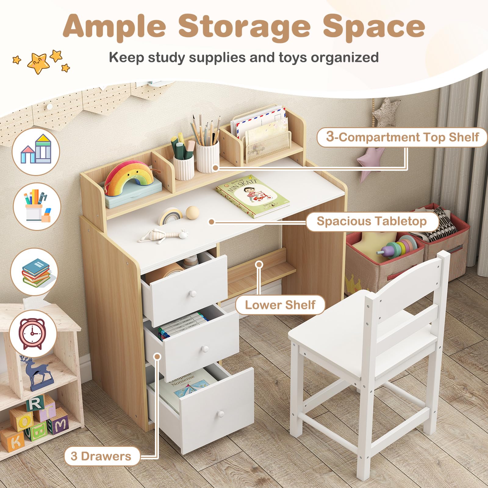 Costzon Kids Desk and Chair Set | Wooden Study Writing Table Set w/Hutch