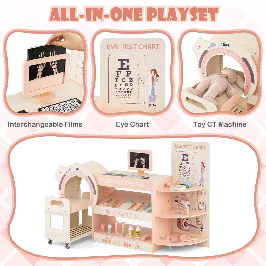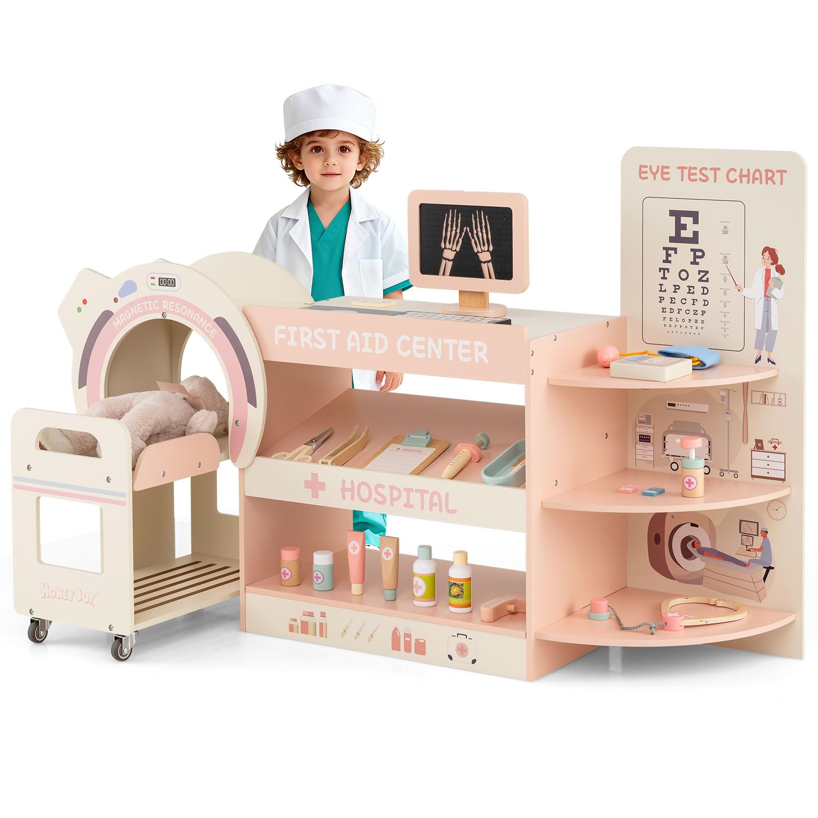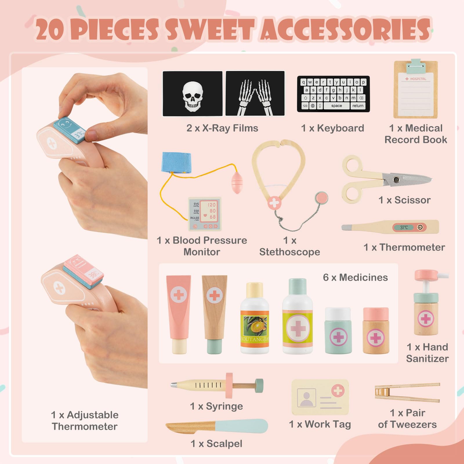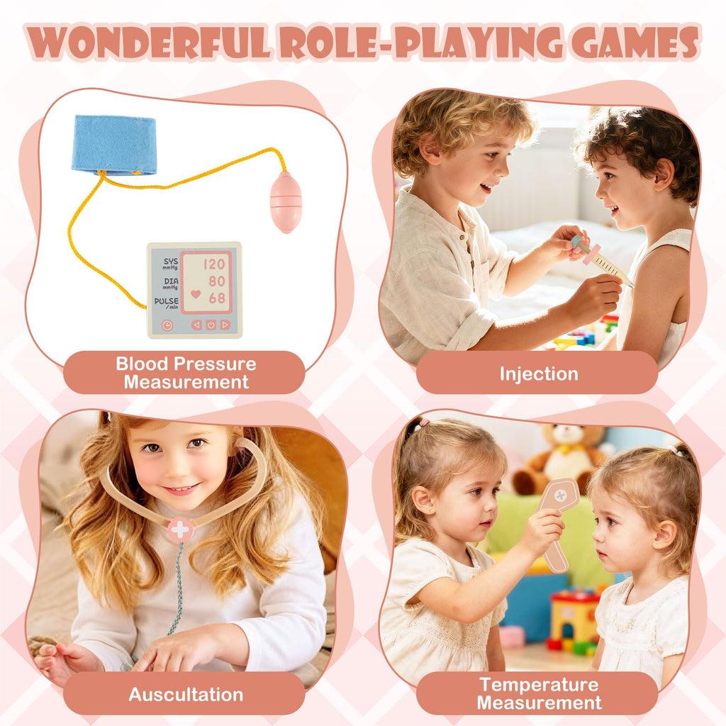Costzon Kids Doctor Play Set Wooden Pretend Doctor Kit w/ Eye Chart