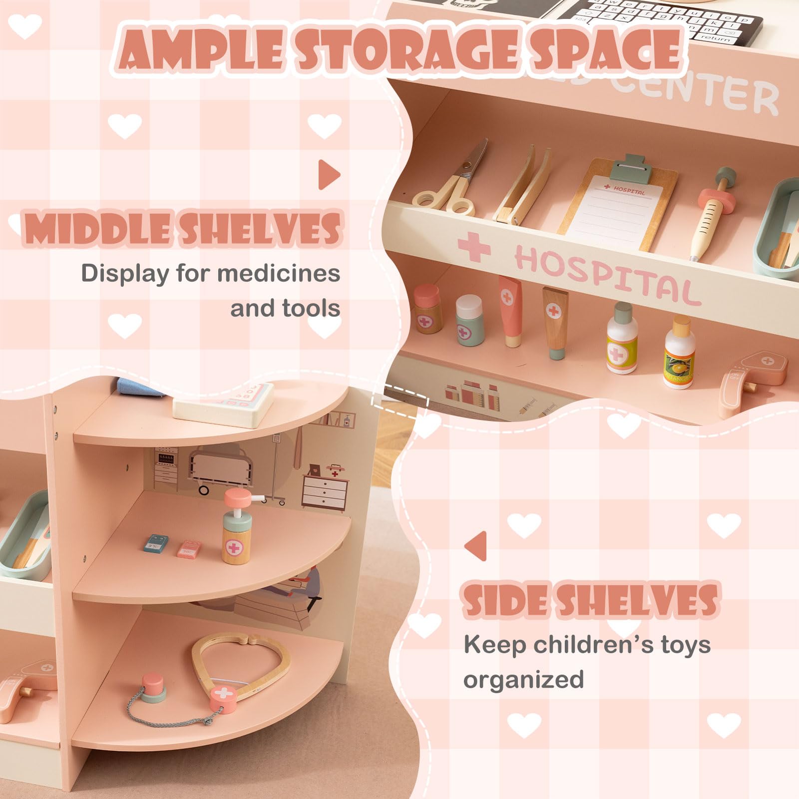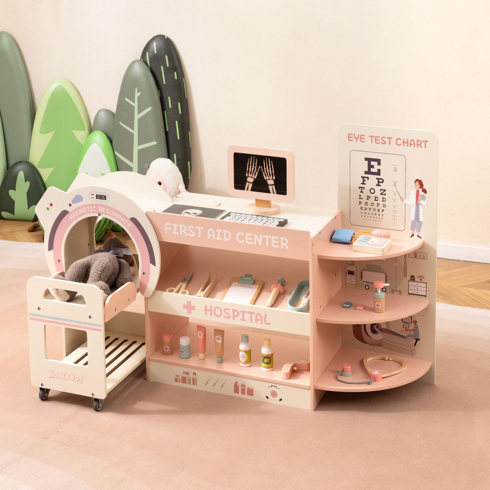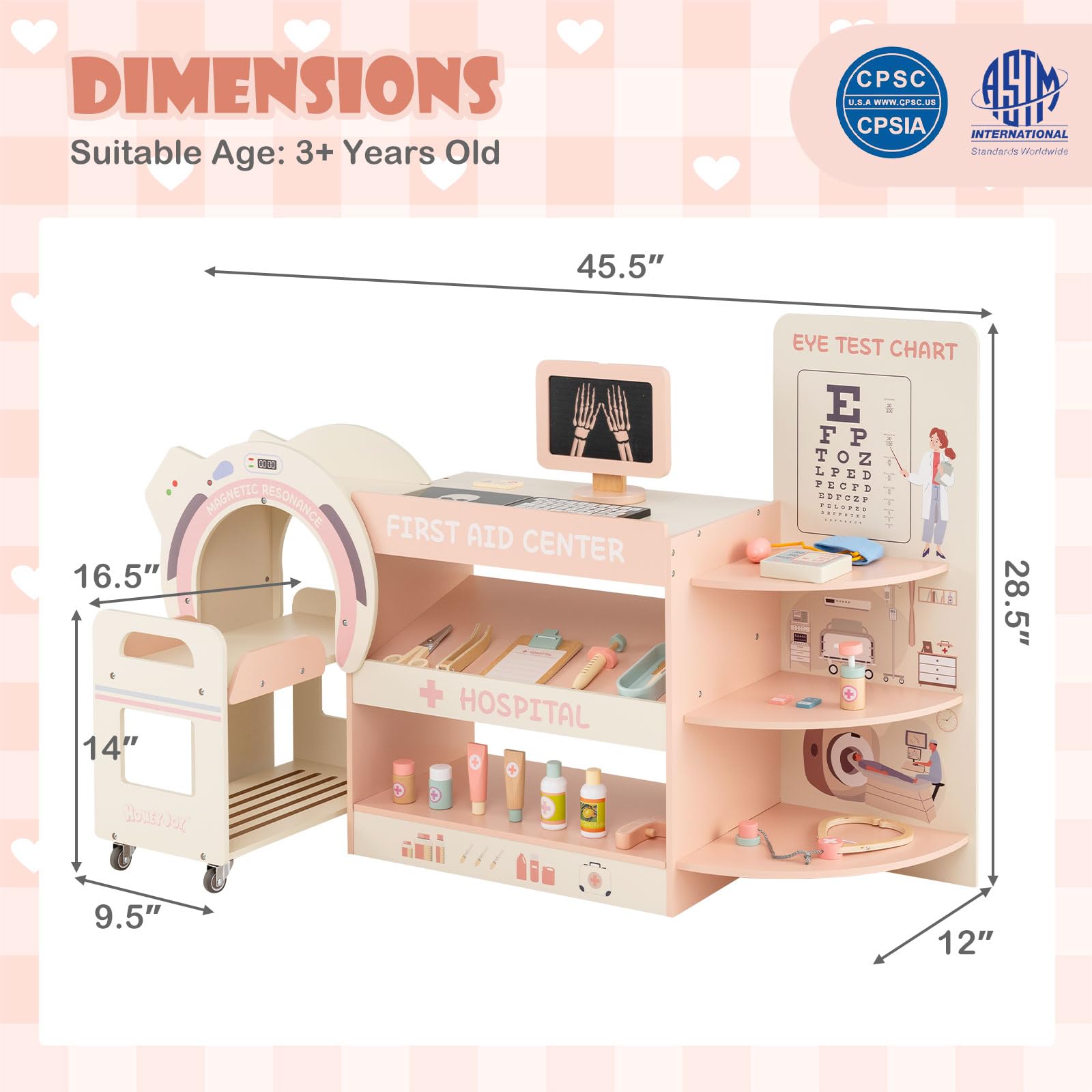 Costzon Kids Doctor Play Set Wooden Pretend Doctor Kit w/ Eye Chart