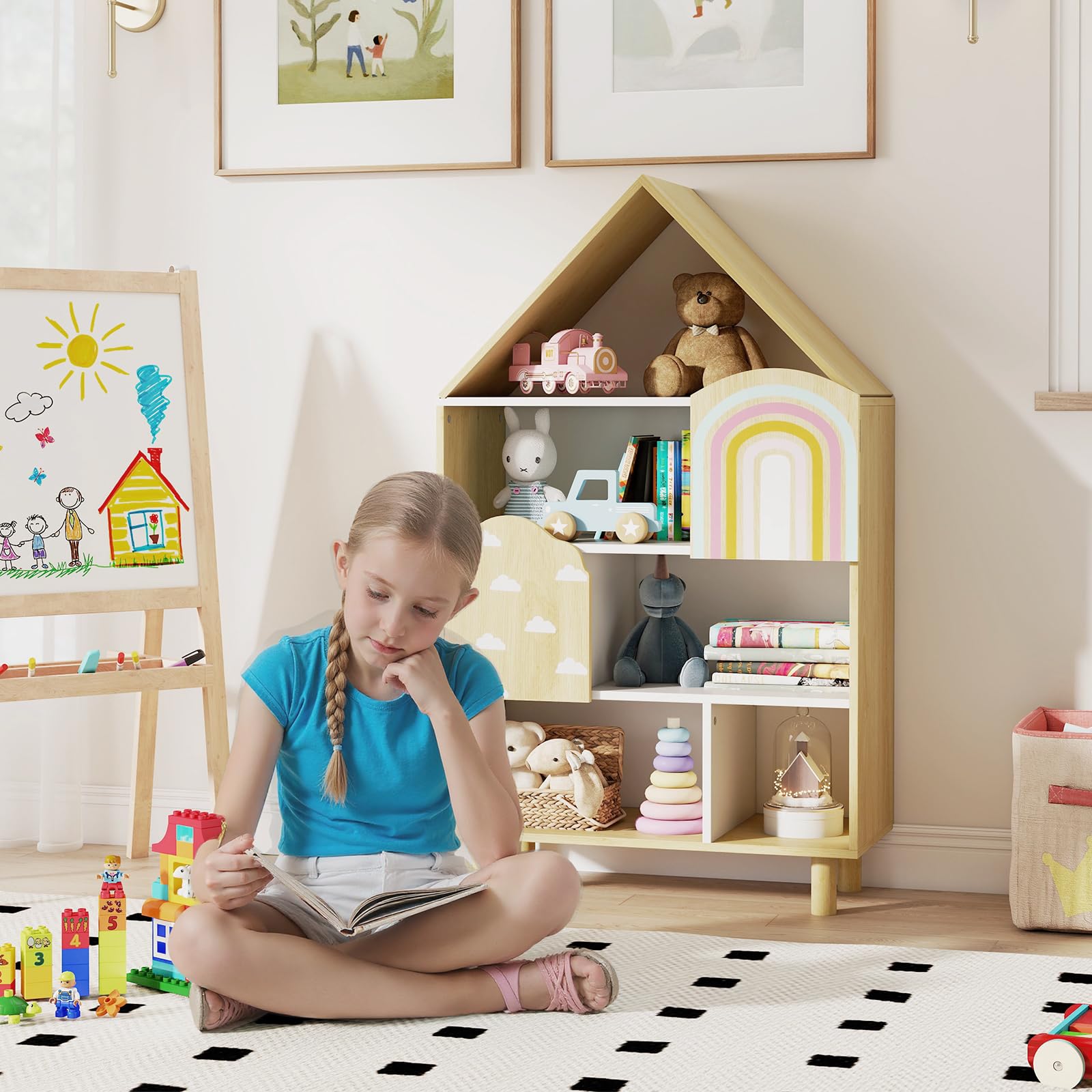 Costzon Kids Dollhouse Bookshelf w/ 2 Doors