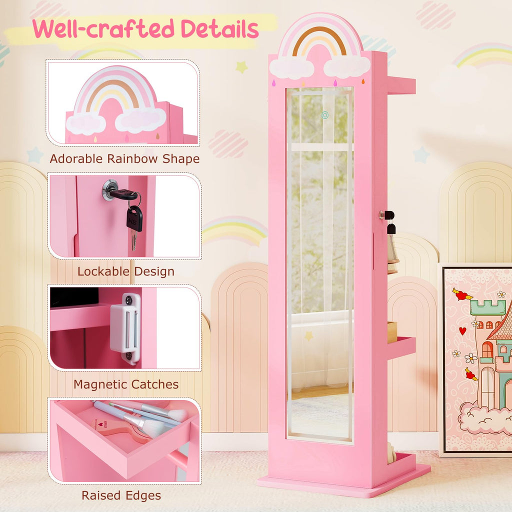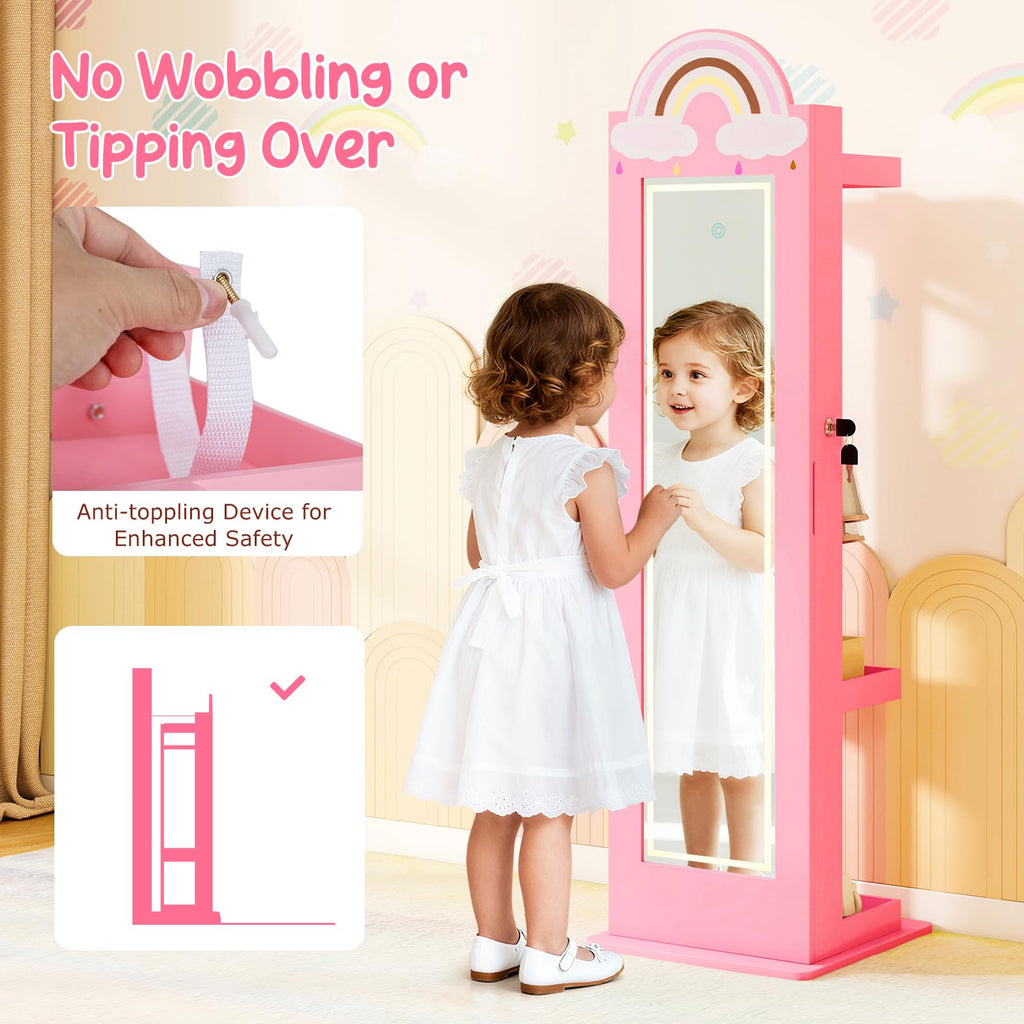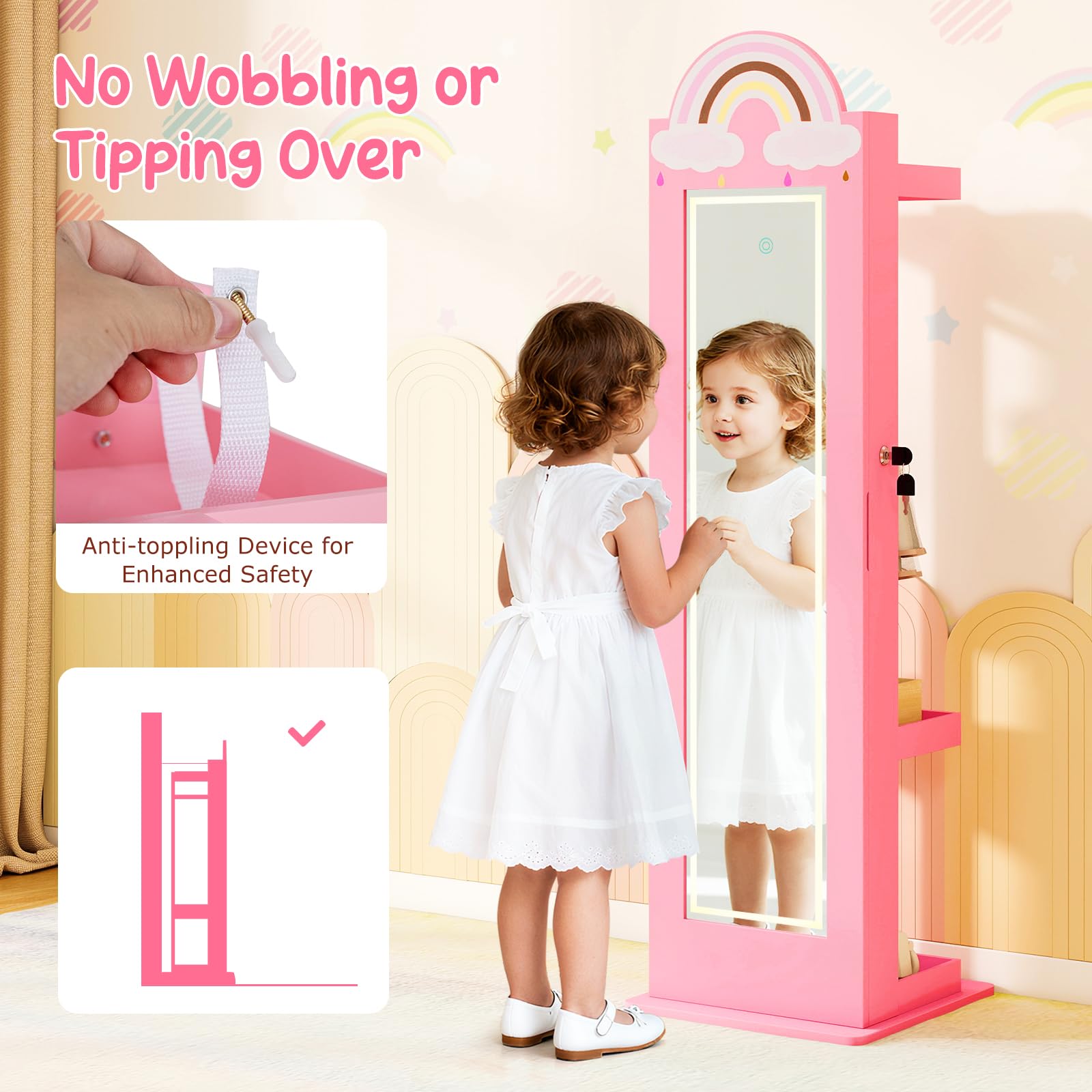 Costzon Kids Jewelry Armoire Cabinet with LED Lights