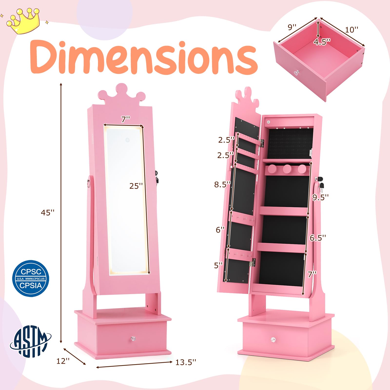 • Perfect Gift for Kids: Designed with an adorable crown shape, this 2 in 1 kids jewelry armoire with full-length mirror will be the perfect gift for birthday, Christmas or other festivals as well as an attractive addition to any kid’s room. Besides, it complies with ASTM and CPSIA for reliable use.