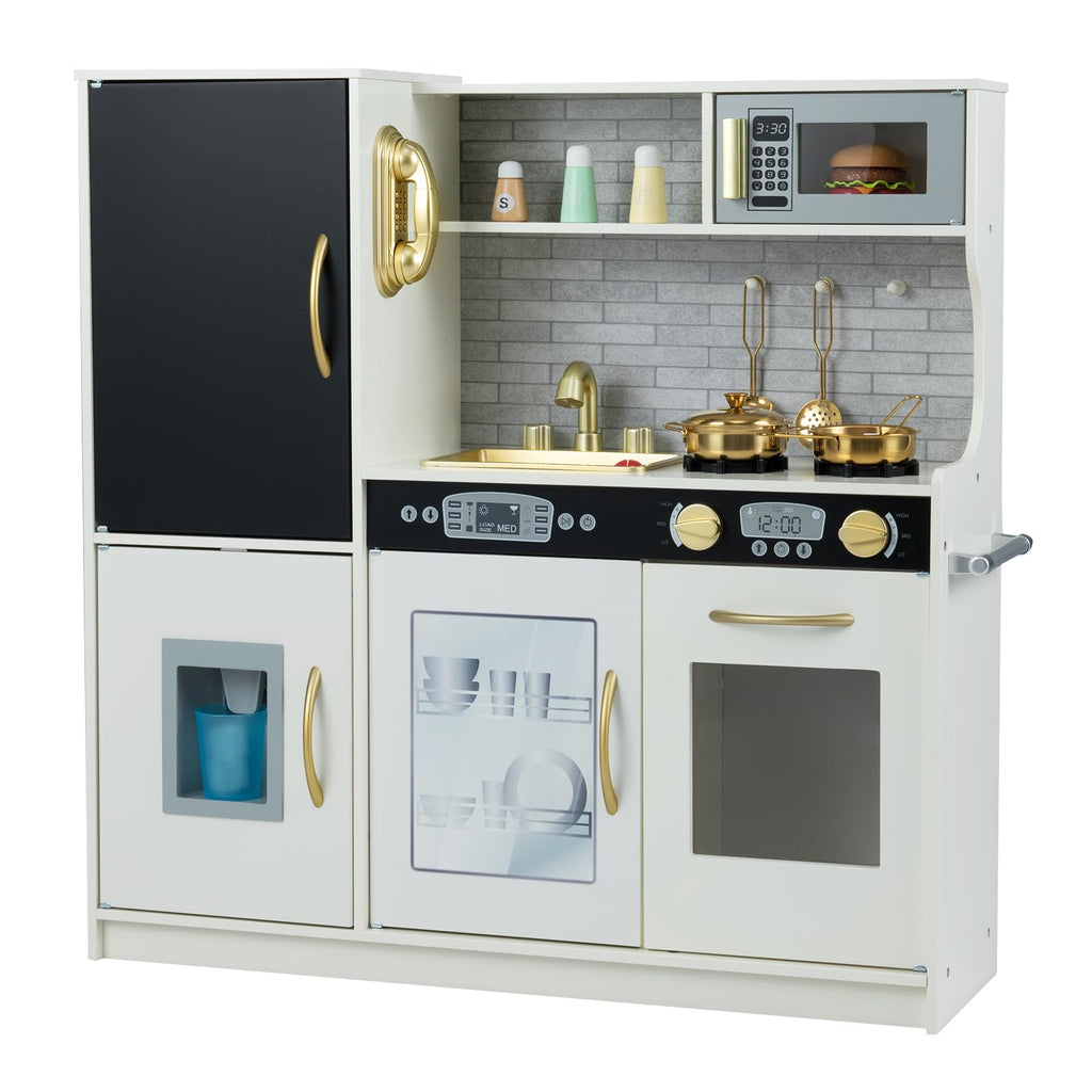Costzon Kids Kitchen Playset, Wooden Kitchen Toy Set, Pretend Play Kitchen for Toddlers