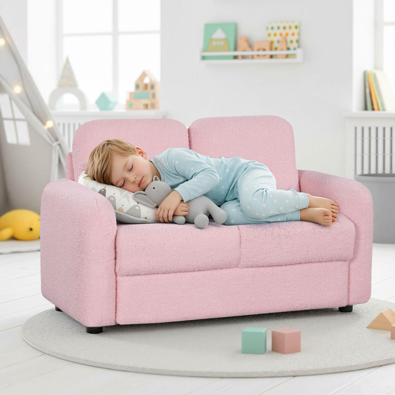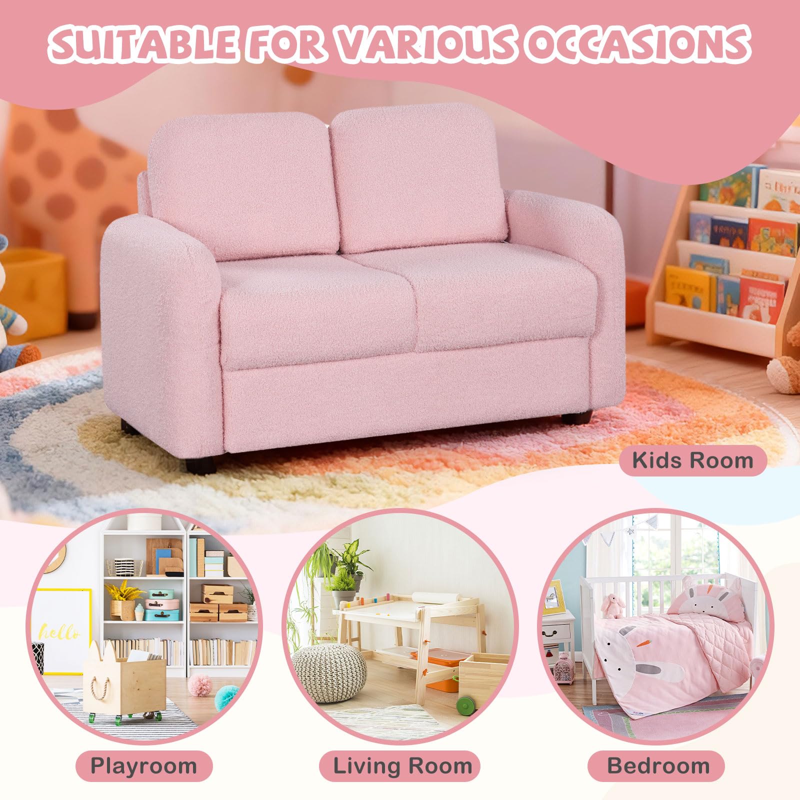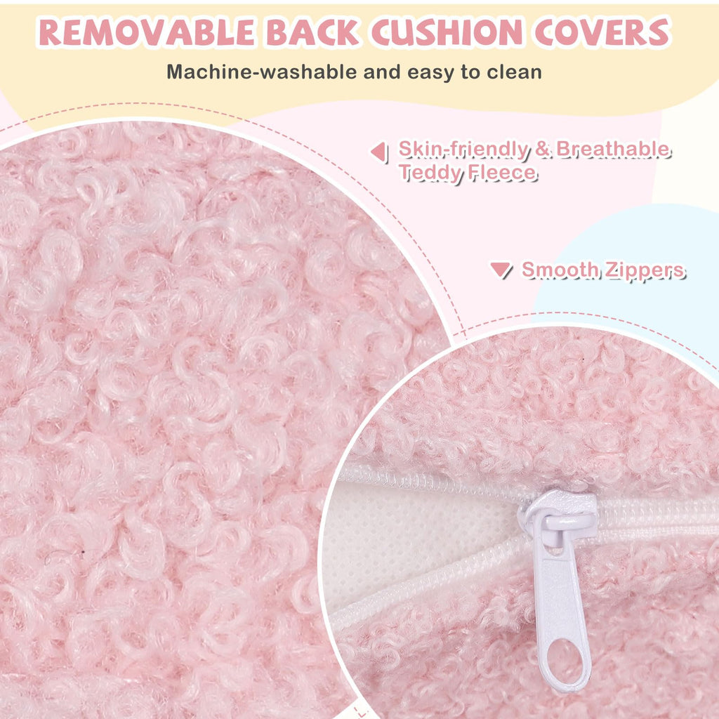 Costzon Kids Pink Couch Toddler Armrest Chair w/Teddy Fleece Upholstery & Solid Wooden Frame