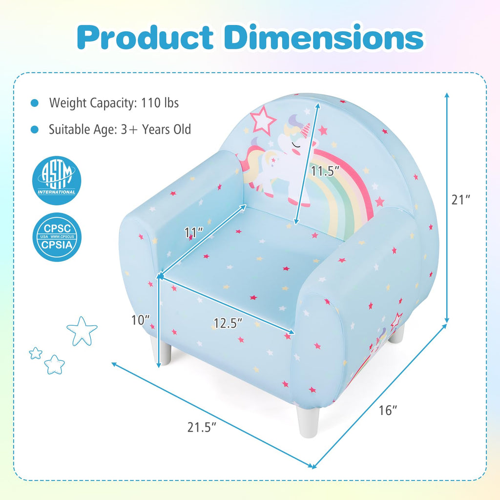 Costzon Kids Sofa Toddler Upholstered Cartoon Armchair w/Breathable Spandex & High-Density Sponge Filling