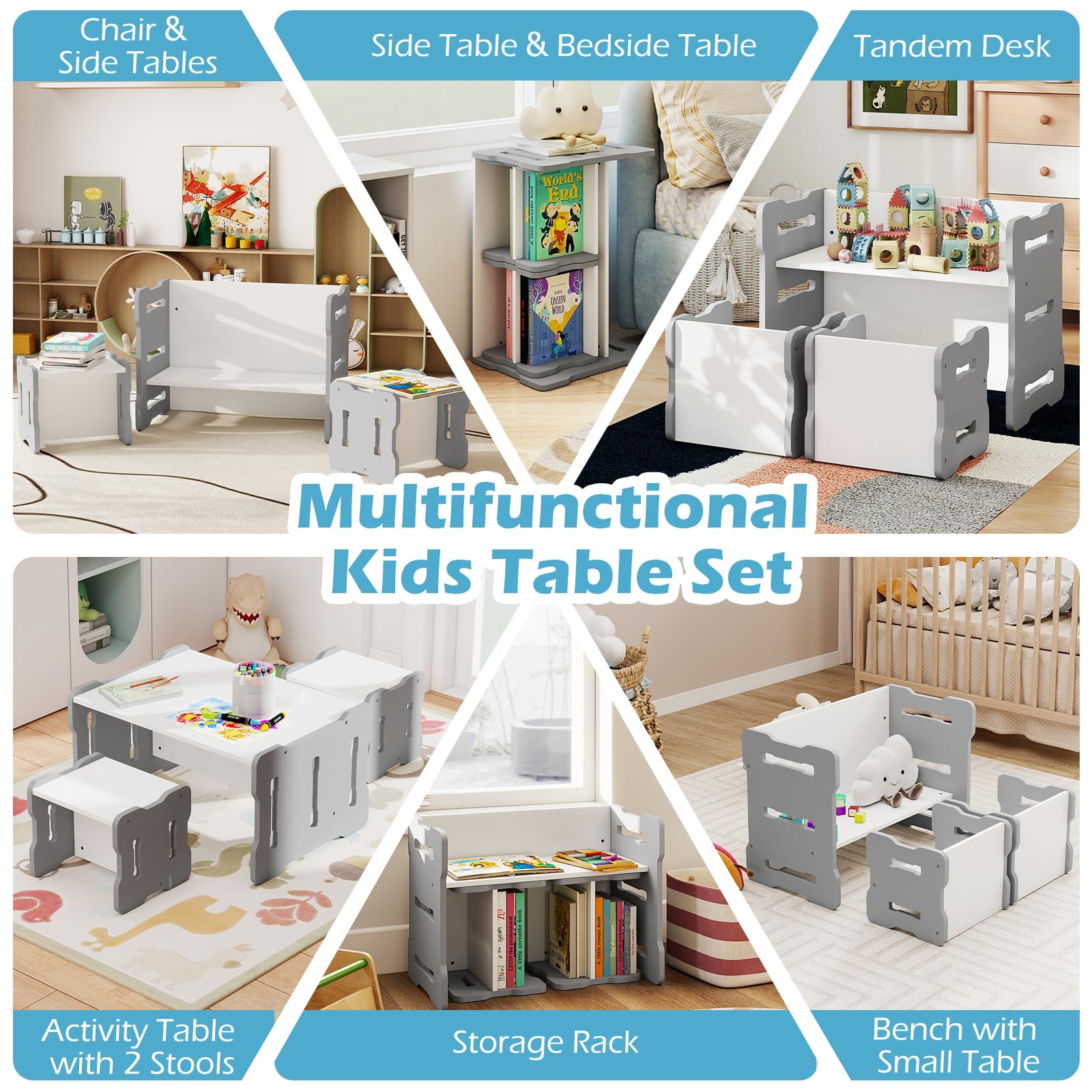 Costzon Kids Table and Chairs All in One Wooden Activity Desk Set