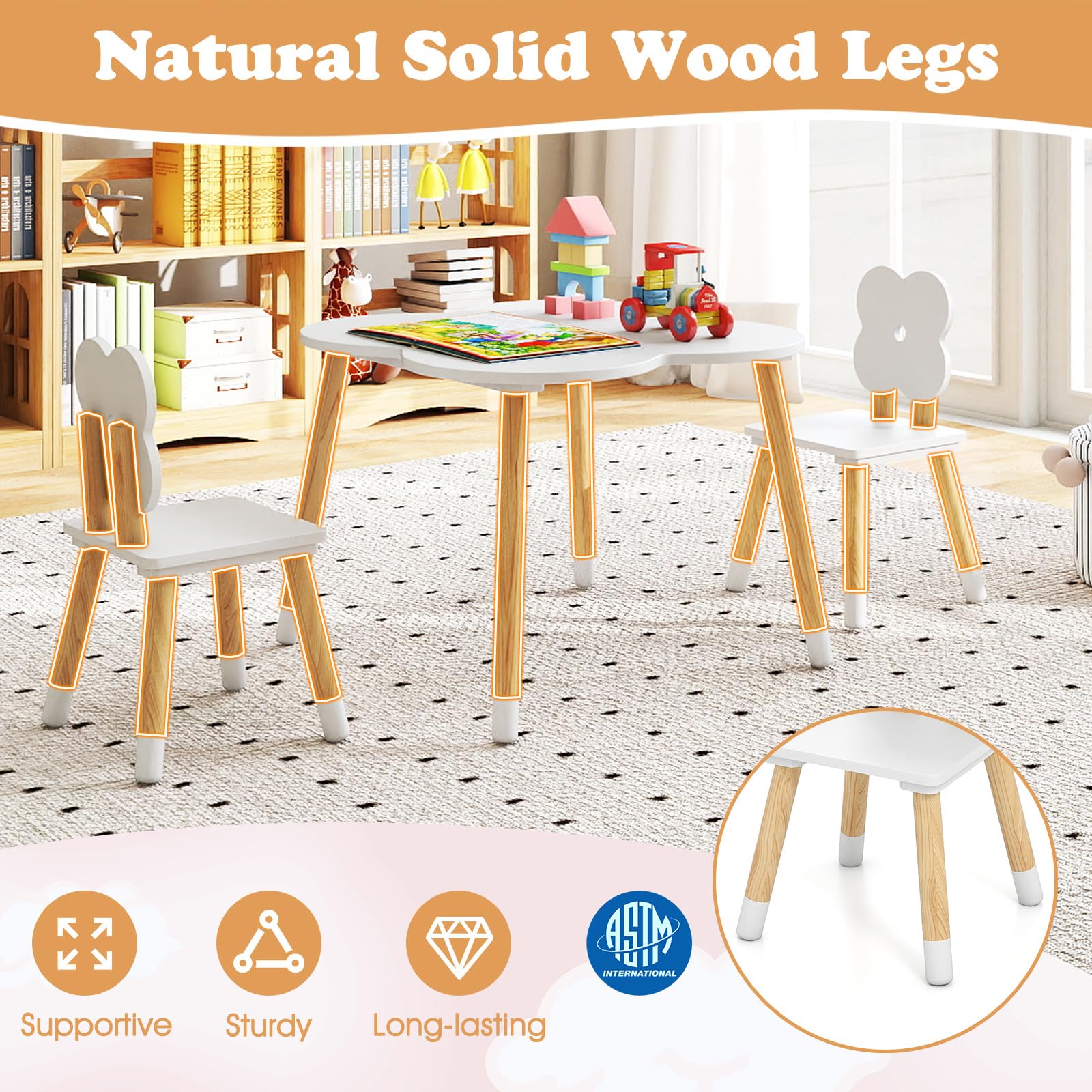 Costzon Kids Table and Chairs Wooden Toddler Desk Set for Play