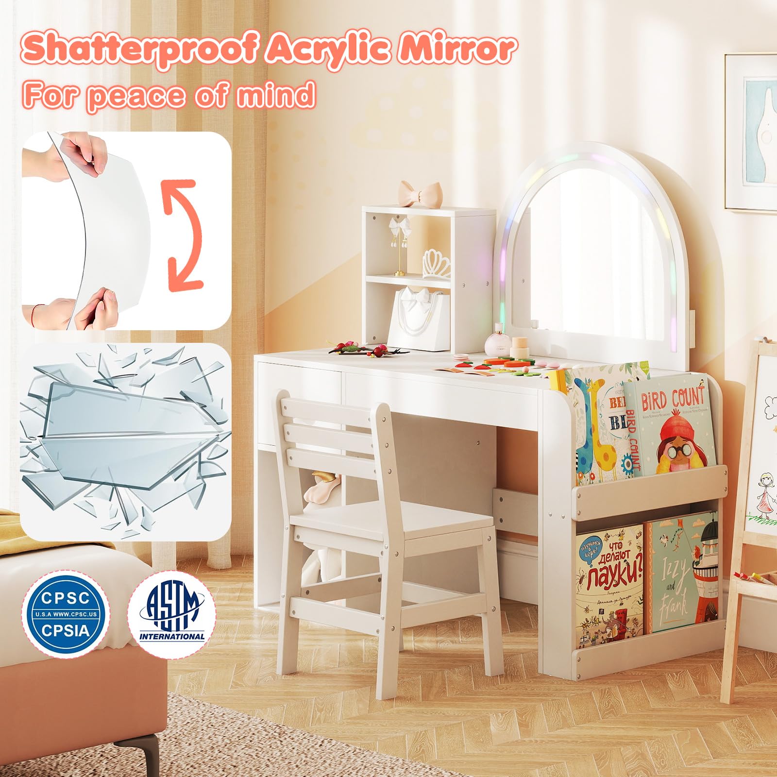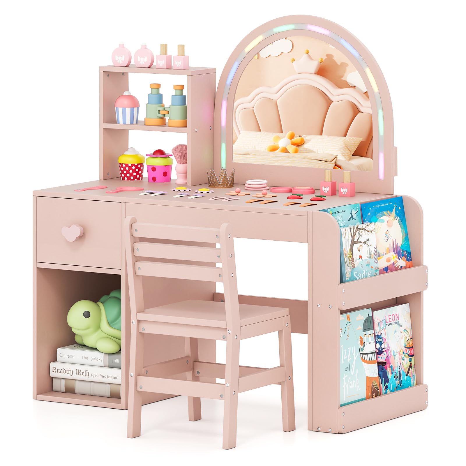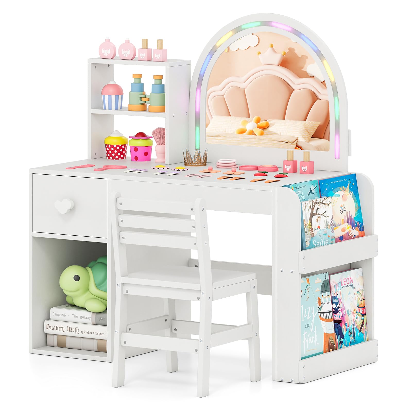 Costzon Kids Vanity Girls Vanity Set with Lighted Mirror