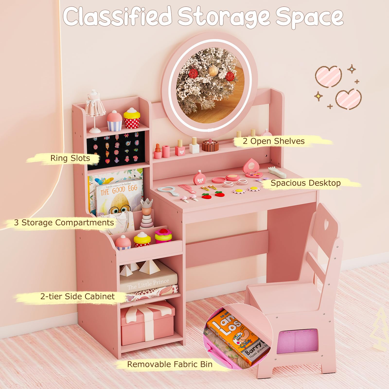 Costzon Kids Vanity Girls Vanity Set with Mirror and Lights