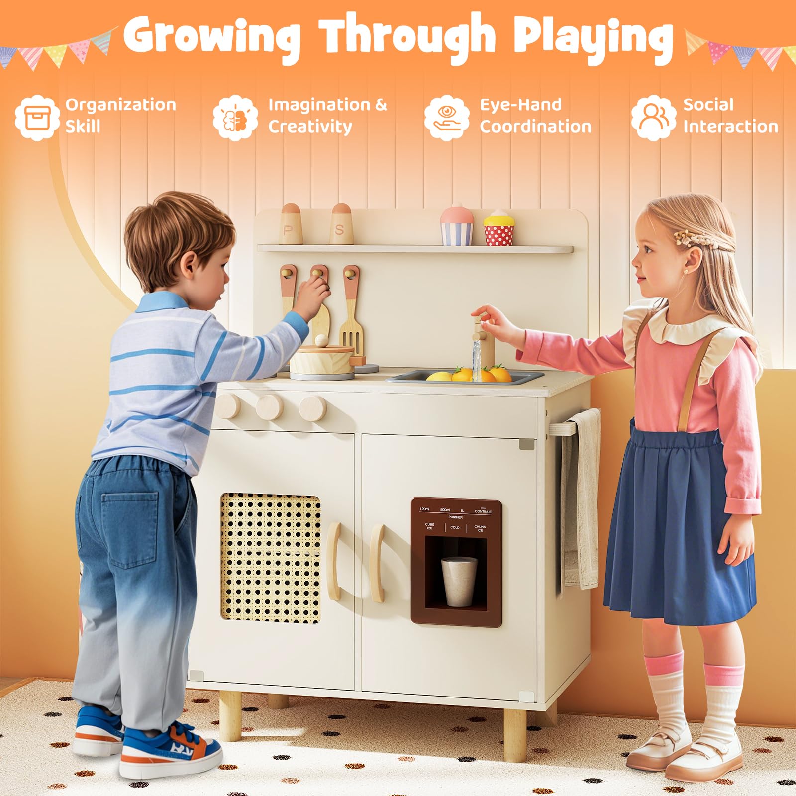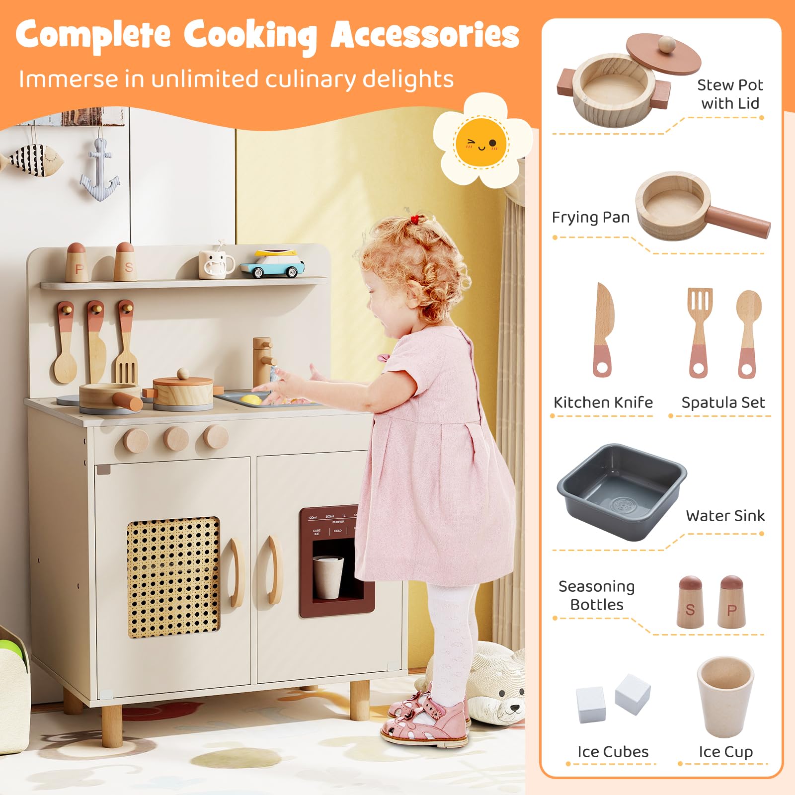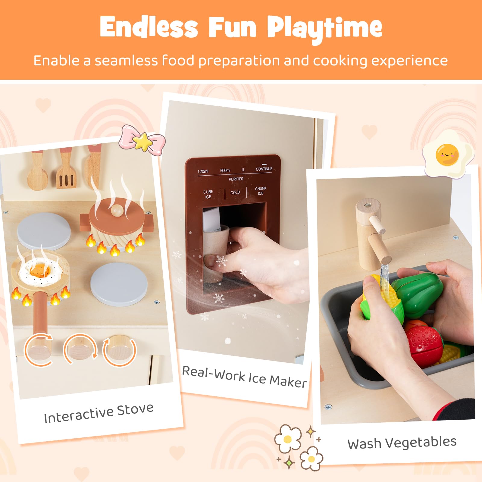 Costzon Little Chef Wooden Pretend Play Toy w/Realistic Ice Maker