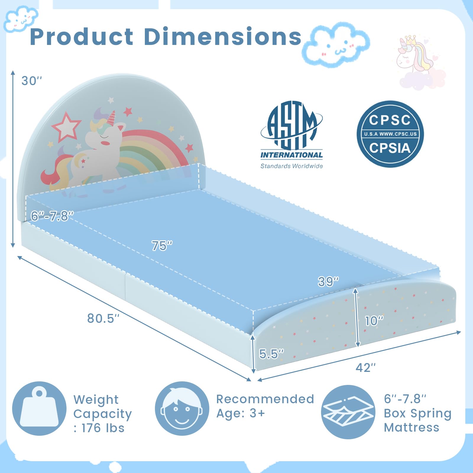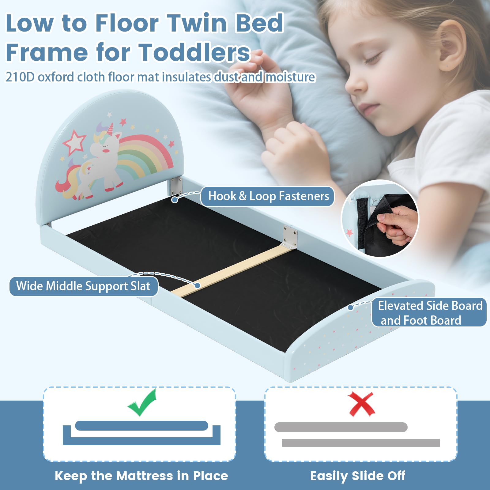 Costzon Twin Floor Bed Frame Upholstered Kids Bed with 210D Oxford Cloth Floor Mat