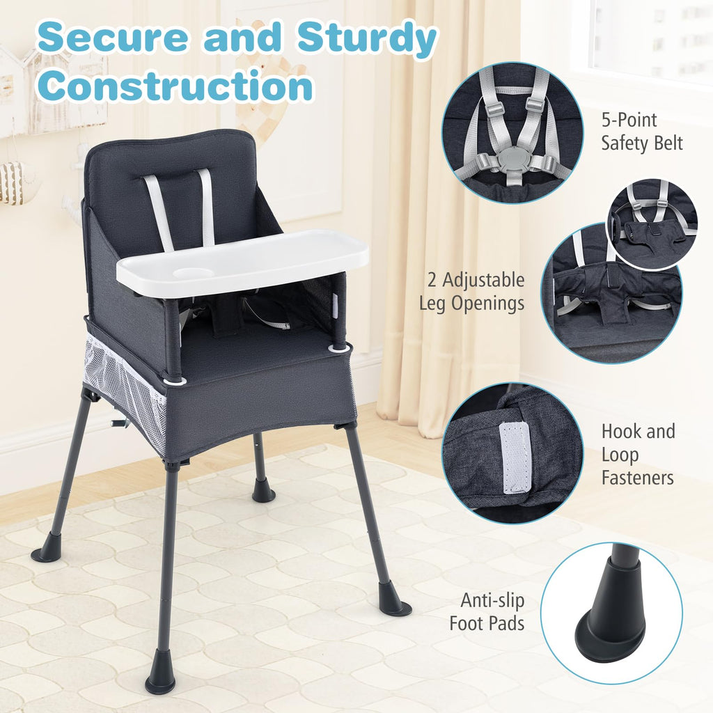 Portable High Chair for Babies and Toddlers Foldable Highchair Travel Seat with Adjustable Tray